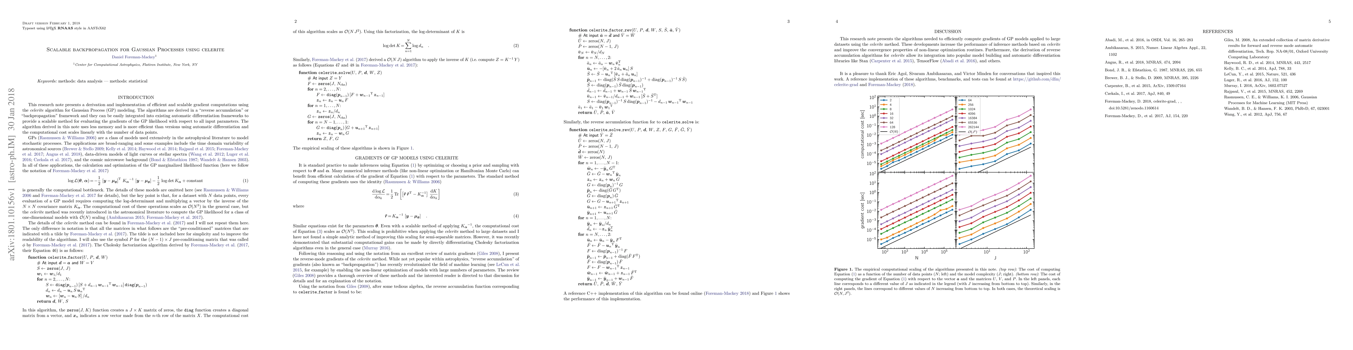 This paper introduces scalable gradient computations for Gaussian Processes using the celerite algorithm, enabling efficient backpropagation and linear scaling with data points, while requiring less memory than traditional methods. The proposed method integrates seamlessly into existing automatic differentiation frameworks.