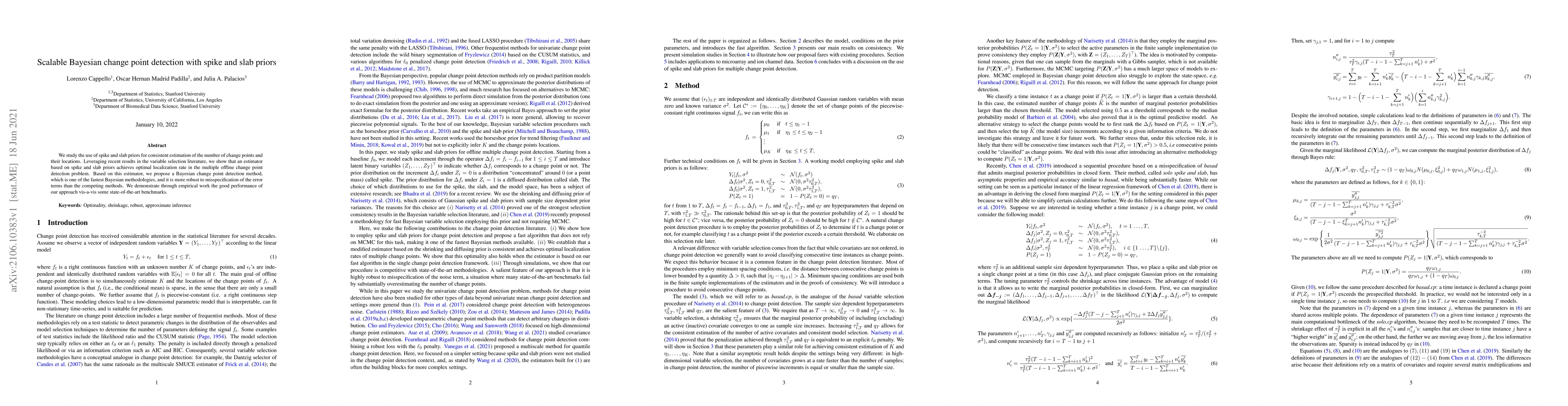 This paper proposes a scalable Bayesian change point detection method using spike and slab priors, achieving optimal localization rates and superior robustness compared to existing methods. Empirical results show its effectiveness against state-of-the-art benchmarks.