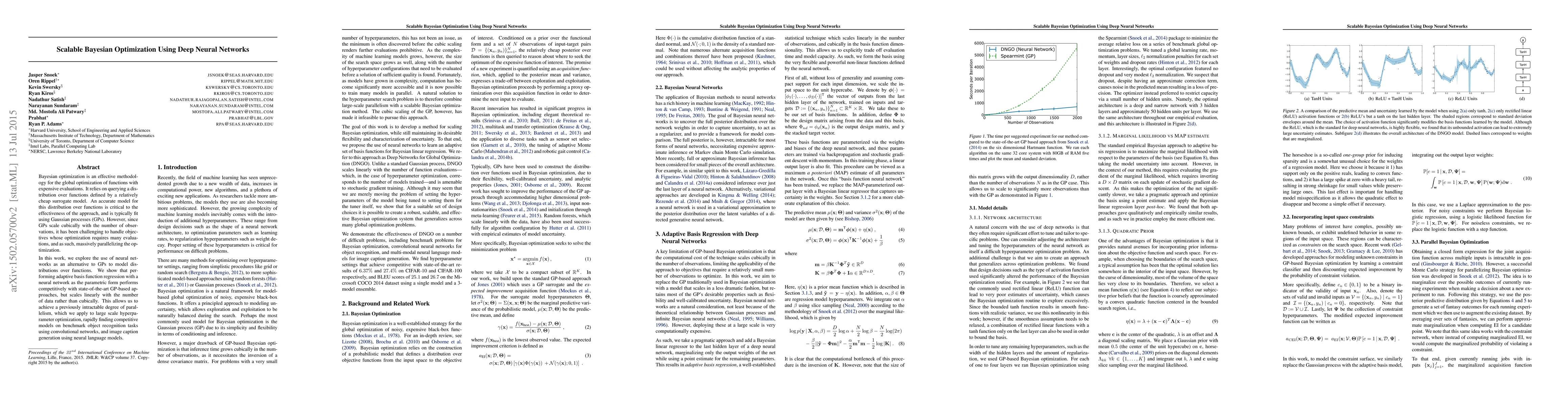 This paper explores using neural networks to model distributions over functions in Bayesian optimization, achieving scalable parallelism and competitive results in large-scale hyperparameter optimization tasks.