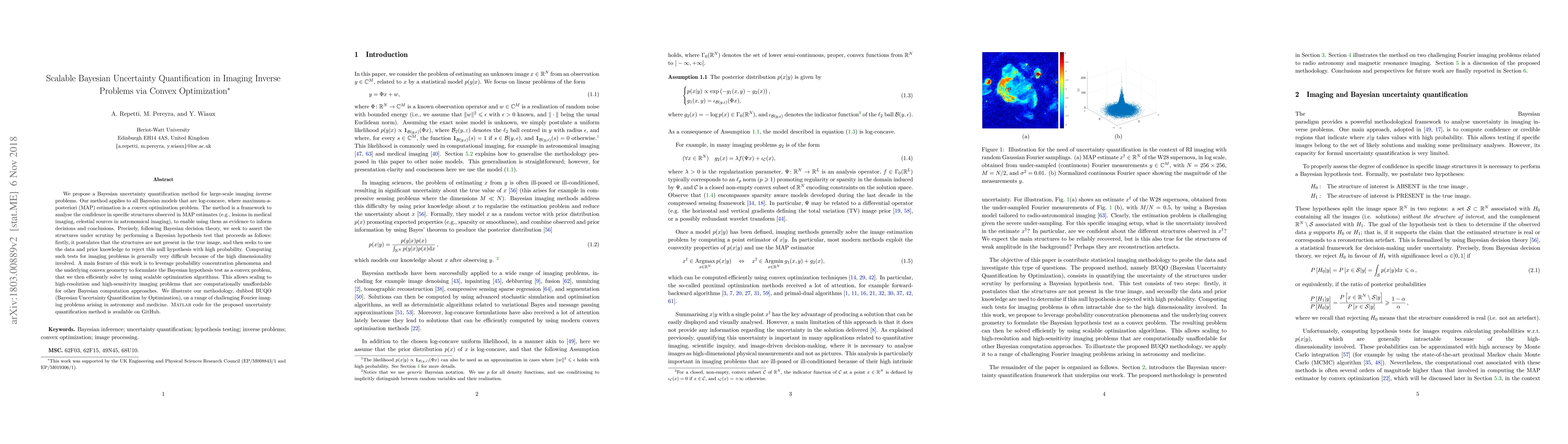 We propose a Bayesian uncertainty quantification method for large-scale imaging inverse problems. Our method applies to all Bayesian models that are log-concave, where maximum-a-posteriori (MAP) estimation is a convex optimization problem. The method is a framework to analyse the confidence in specific structures observed in MAP estimates (e.g., lesions in medical imaging, celestial sources in astronomical imaging), to enable using them as evidence to inform decisions and conclusions. Precisely, following Bayesian decision theory, we seek to assert the structures under scrutiny by performing a Bayesian hypothesis test that proceeds as follows: firstly, it postulates that the structures are not present in the true image, and then seeks to use the data and prior knowledge to reject this null hypothesis with high probability. Computing such tests for imaging problems is generally very difficult because of the high dimensionality involved. A main feature of this work is to leverage probability concentration phenomena and the underlying convex geometry to formulate the Bayesian hypothesis test as a convex problem, that we then efficiently solve by using scalable optimization algorithms. This allows scaling to high-resolution and high-sensitivity imaging problems that are computationally unaffordable for other Bayesian computation approaches. We illustrate our methodology, dubbed BUQO (Bayesian Uncertainty Quantification by Optimization), on a range of challenging Fourier imaging problems arising in astronomy and medicine.