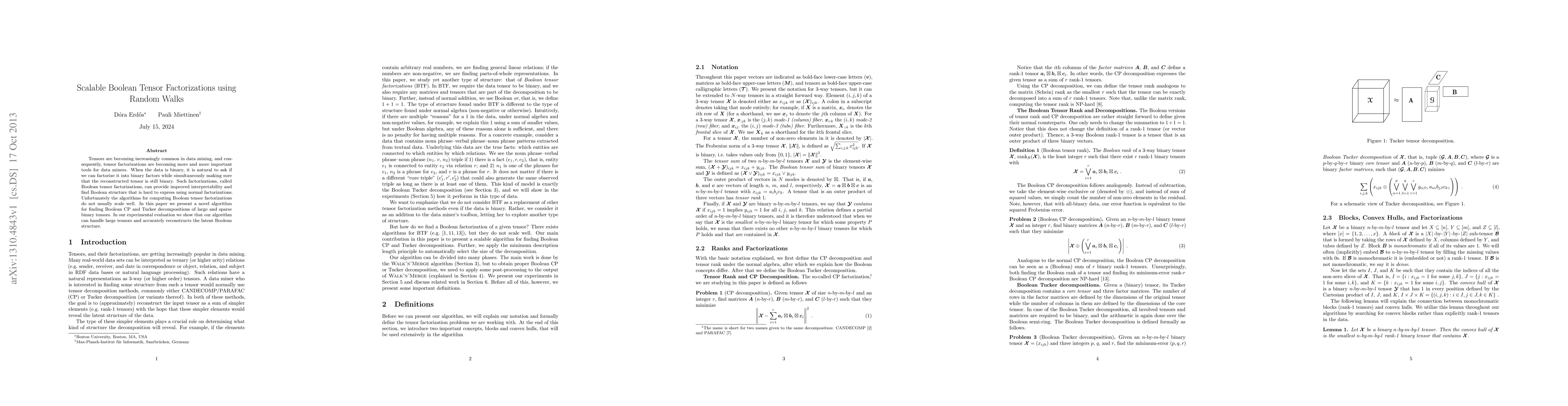 This paper introduces a novel algorithm for scalable Boolean tensor factorizations, enabling accurate reconstruction of latent binary structures in large sparse tensors. The method outperforms existing algorithms in handling big data, improving interpretability for binary data mining.