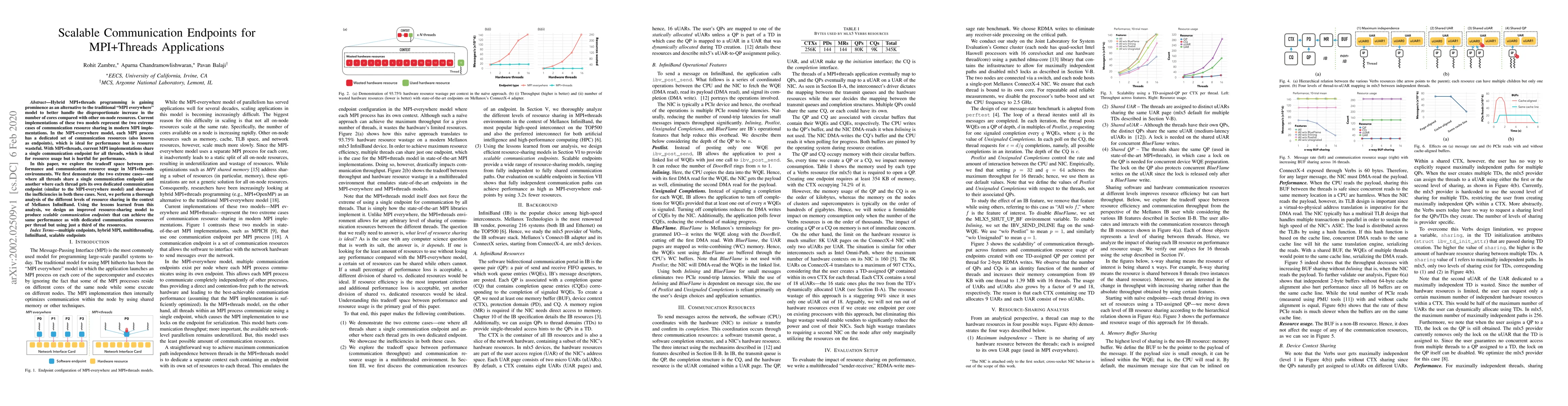 This paper investigates hybrid MPI+threads programming to optimize communication resource usage and performance. It demonstrates inefficiencies in both extreme resource-sharing models and proposes a scalable communication endpoint design that achieves high performance while significantly reducing resource usage.