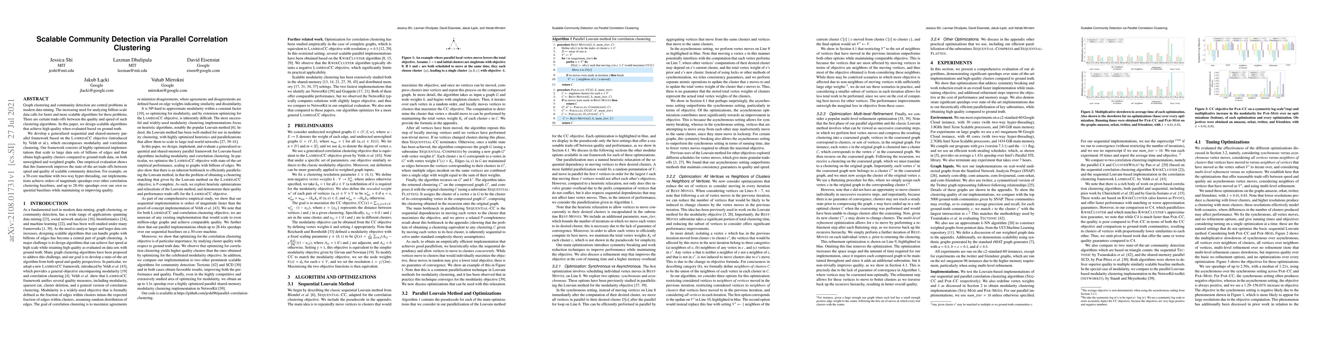 This paper presents scalable algorithms for community detection based on parallel correlation clustering, achieving high-quality clusters on large datasets. The proposed framework significantly improves the trade-off between speed and quality, demonstrating up to 28.44x speedups on parallel implementations compared to sequential baselines.