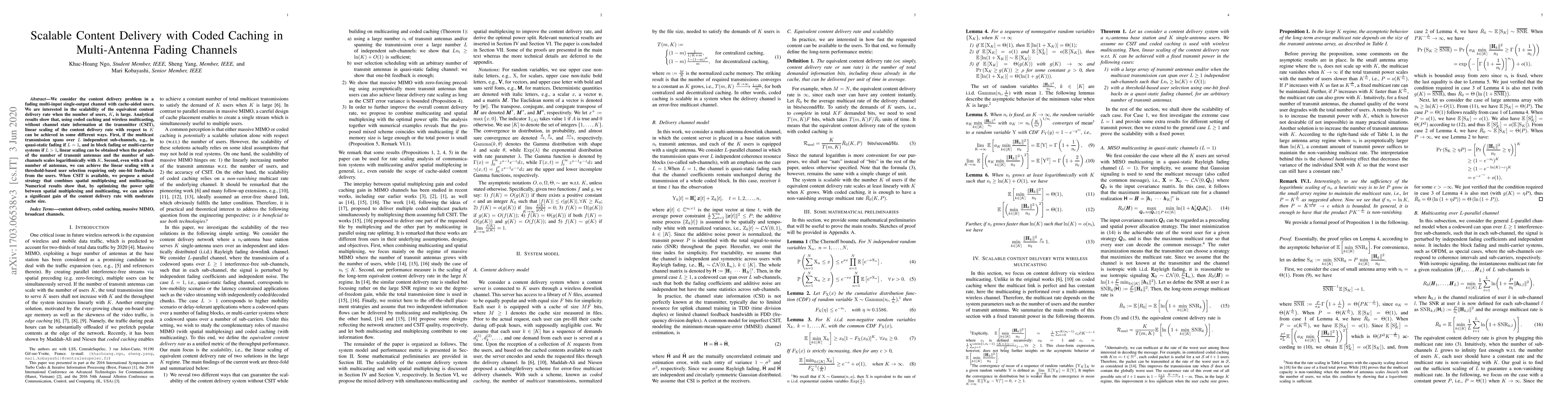 This paper explores scalable content delivery in cache-aided users over fading multi-input single-output channels, achieving linear scaling of delivery rate with user number $K$ via coded caching and wireless multicasting. It proposes methods for linear scaling without channel state information at the transmitter, including strategies based on sub-channel multicasting and threshold-based user selection.