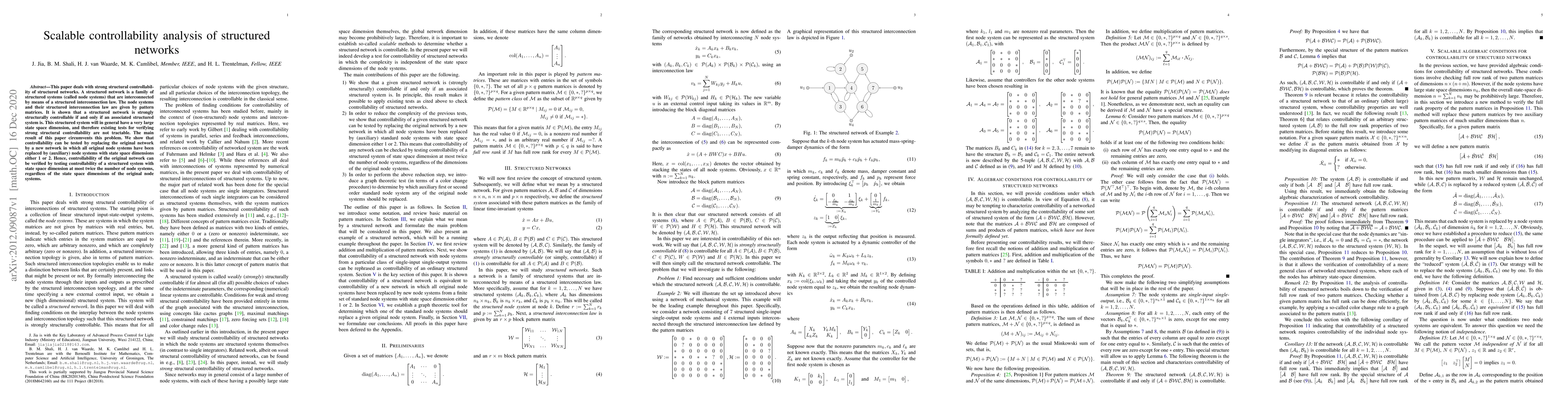 This paper proposes a scalable method for analyzing strong structural controllability in structured networks, demonstrating that controllability can be tested by simplifying the network to a manageable size, thus making existing large-scale tests tractable.