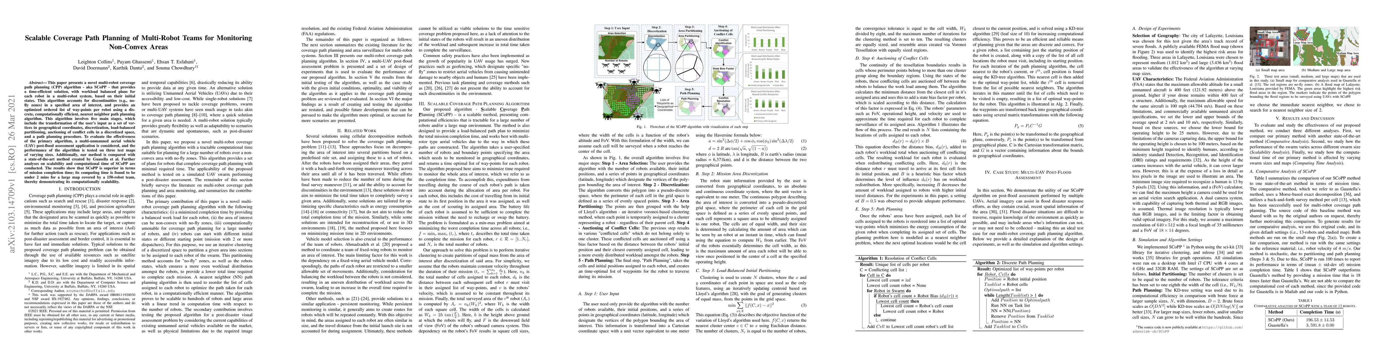 This paper introduces SCoPP, a scalable multi-robot coverage path planning algorithm that efficiently balances workload and optimizes path planning for non-convex areas with discontinuities. It outperforms existing methods in mission completion time and scales well with large teams and map sizes.