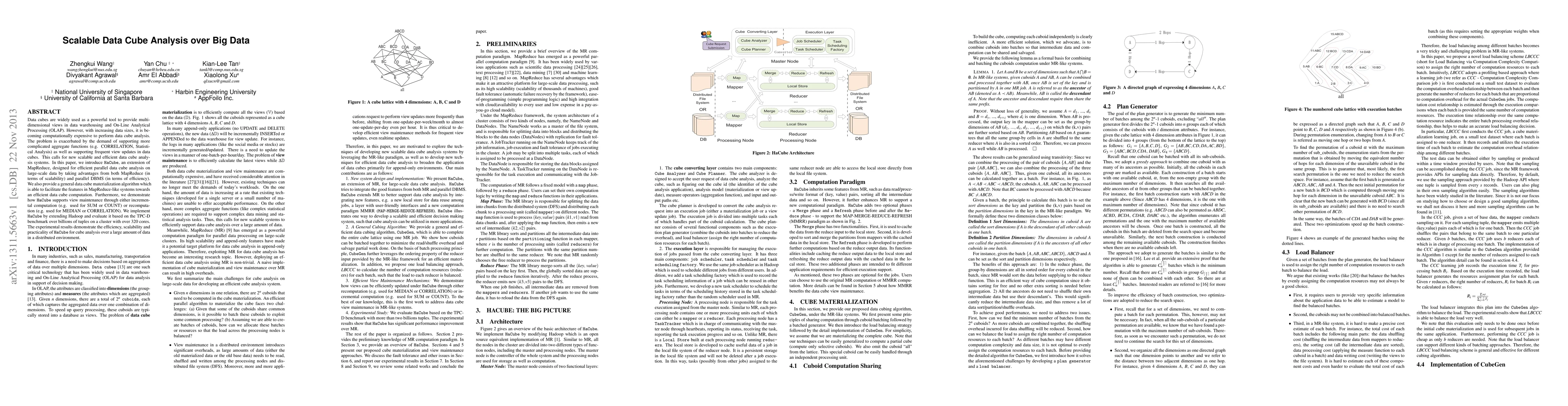 This paper introduces HaCube, an extension of MapReduce for scalable, efficient parallel data cube analysis on large-scale data, leveraging both scalability and efficiency. HaCube supports complex aggregate functions and frequent view updates, demonstrated through an implementation extending Hadoop and evaluated on the TPC-D benchmark.