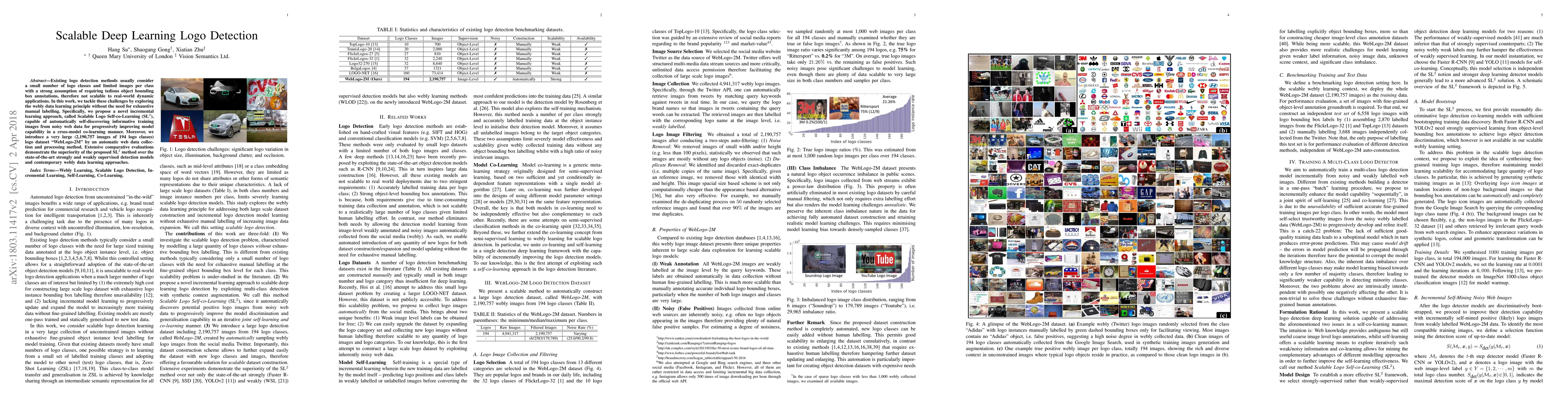 This paper proposes a scalable deep learning method for logo detection using webly data learning without manual annotations. The introduced Scalable Logo Self-co-Learning (SL^2) approach enables incremental learning from web data, and a new large logo dataset, WebLogo-2M, is also presented. The proposed method outperforms existing supervised and weakly supervised models in detection accuracy.