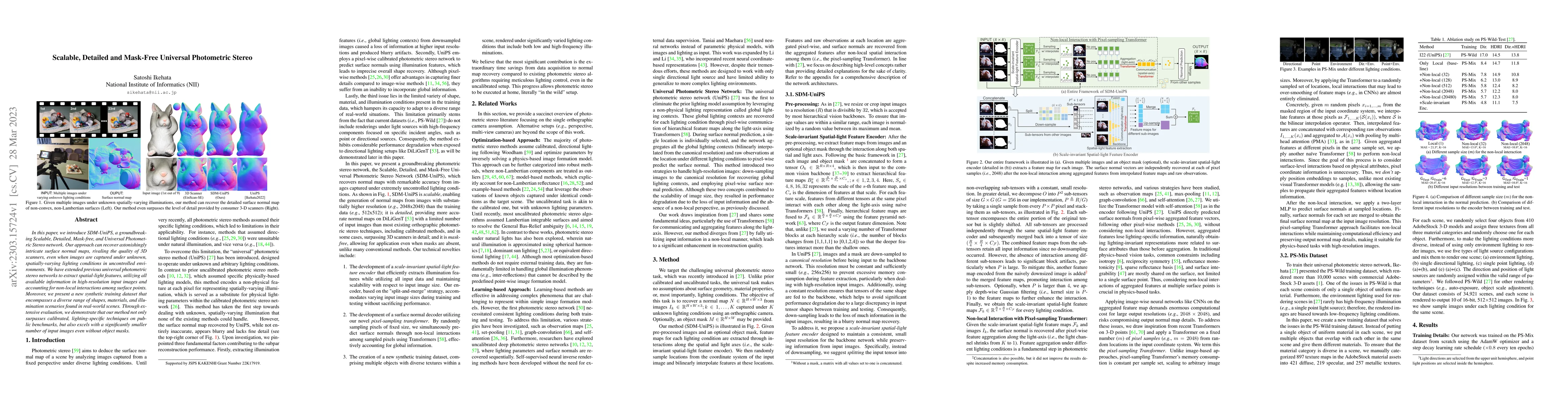 This paper presents SDM-UniPS, a scalable, detailed, mask-free universal photometric stereo network that recovers intricate surface normal maps under unknown lighting conditions. It outperforms calibrated techniques and requires fewer input images, leveraging a synthetic dataset for diverse training scenarios.