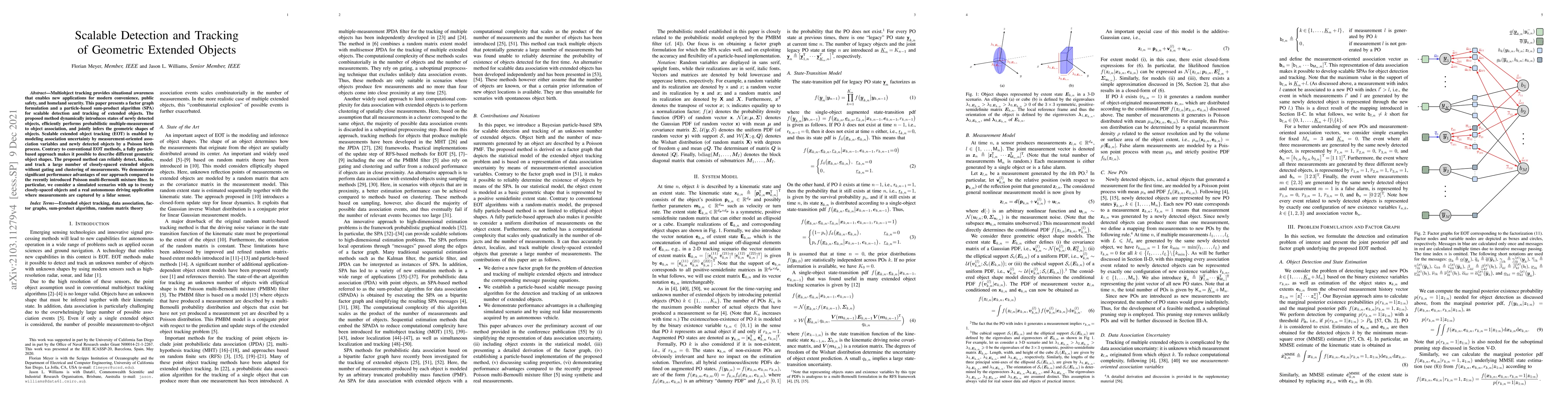Multiobject tracking provides situational awareness that enables new applications for modern convenience, public safety, and homeland security. This paper presents a factor graph formulation and a particle-based sum-product algorithm (SPA) for scalable detection and tracking of extended objects. The proposed method dynamically introduces states of newly detected objects, efficiently performs probabilistic multiple-measurement to object association, and jointly infers the geometric shapes of objects. Scalable extended object tracking (EOT) is enabled by modeling association uncertainty by measurement-oriented association variables and newly detected objects by a Poisson birth process. Contrary to conventional EOT methods, a fully particle-based approach makes it possible to describe different geometric object shapes. The proposed method can reliably detect, localize, and track a large number of closely-spaced extended objects without gating and clustering of measurements. We demonstrate significant performance advantages of our approach compared to the recently introduced Poisson multi-Bernoulli mixture filter. In particular, we consider a simulated scenarios with up to twenty closely-spaced objects and a real autonomous driving application where measurements are captured by a lidar sensor.