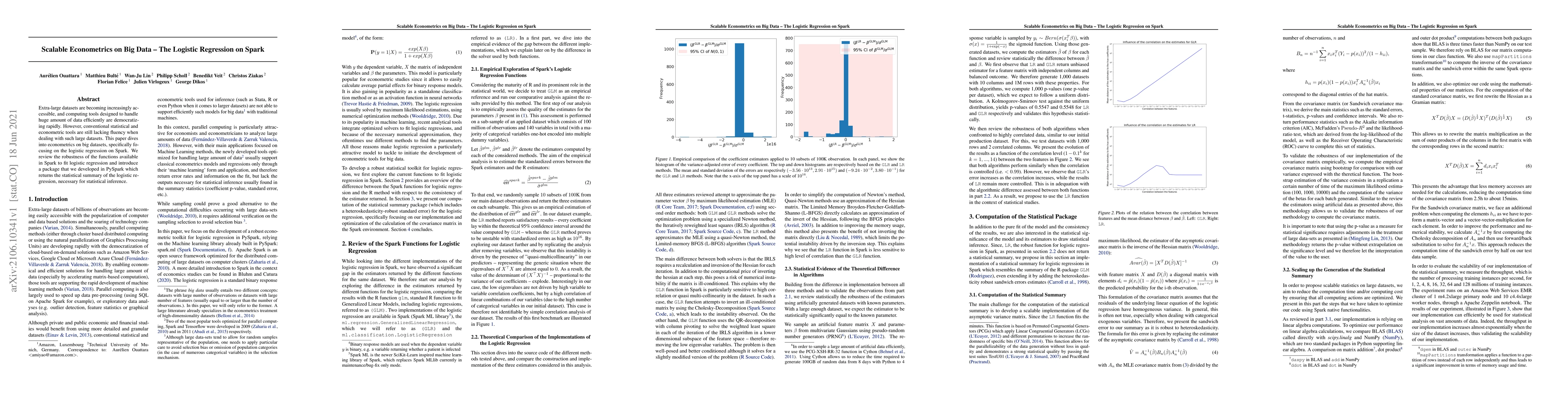 This paper develops a package for logistic regression on Spark to handle large datasets efficiently, improving econometric analysis with big data.