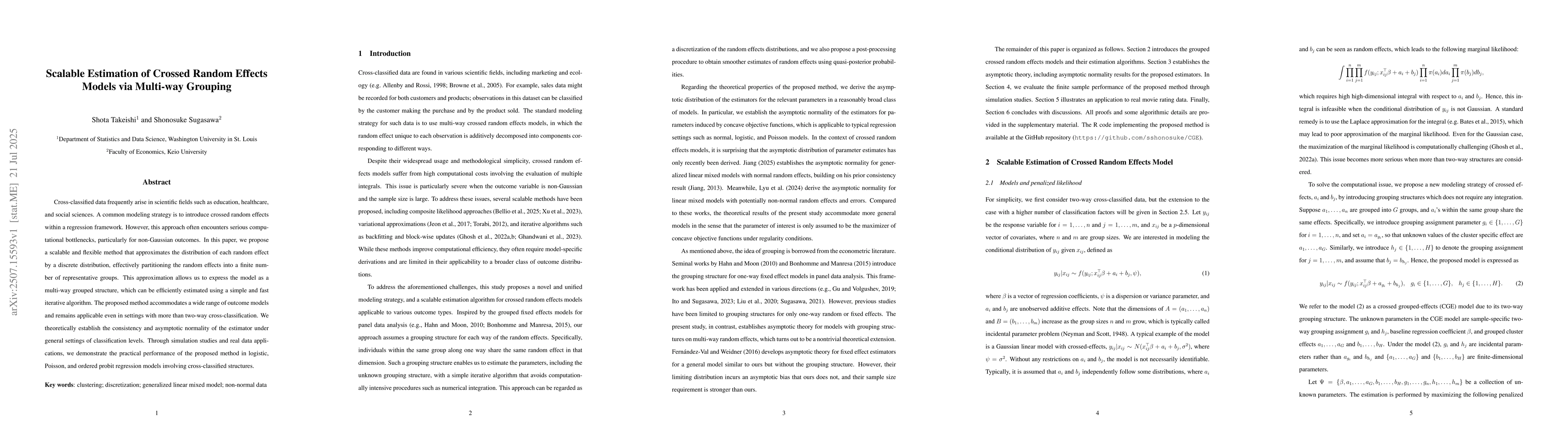 Cross-classified data frequently arise in scientific fields such as education, healthcare, and social sciences. A common modeling strategy is to introduce crossed random effects within a regression framework. However, this approach often encounters serious computational bottlenecks, particularly for non-Gaussian outcomes. In this paper, we propose a scalable and flexible method that approximates the distribution of each random effect by a discrete distribution, effectively partitioning the random effects into a finite number of representative groups. This approximation allows us to express the model as a multi-way grouped structure, which can be efficiently estimated using a simple and fast iterative algorithm. The proposed method accommodates a wide range of outcome models and remains applicable even in settings with more than two-way cross-classification. We theoretically establish the consistency and asymptotic normality of the estimator under general settings of classification levels. Through simulation studies and real data applications, we demonstrate the practical performance of the proposed method in logistic, Poisson, and ordered probit regression models involving cross-classified structures.