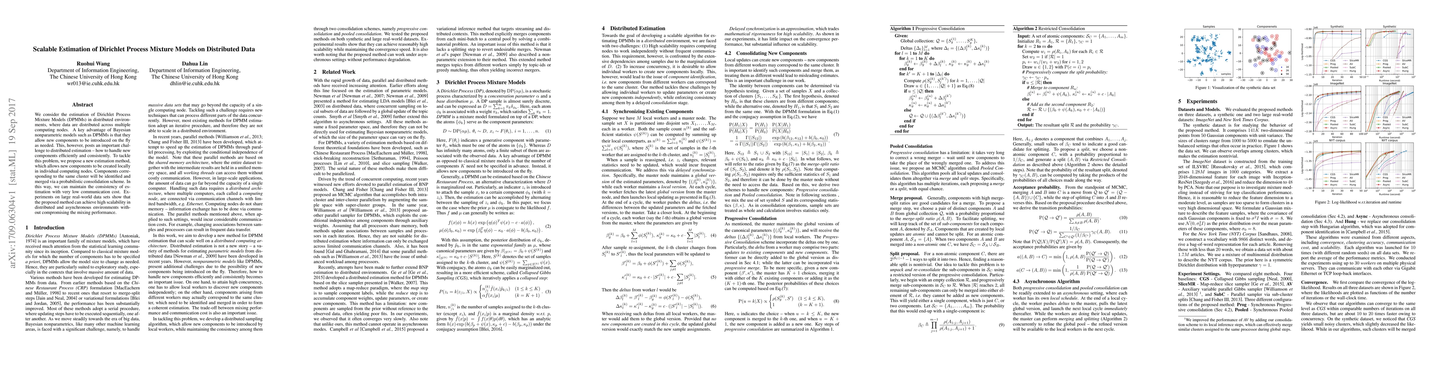 This paper introduces a method for efficiently estimating Dirichlet Process Mixture Models (DPMMs) in distributed computing environments, enabling new components to be added locally with minimal communication. Experiments on large datasets demonstrate high scalability and consistent performance without sacrificing mixing quality.