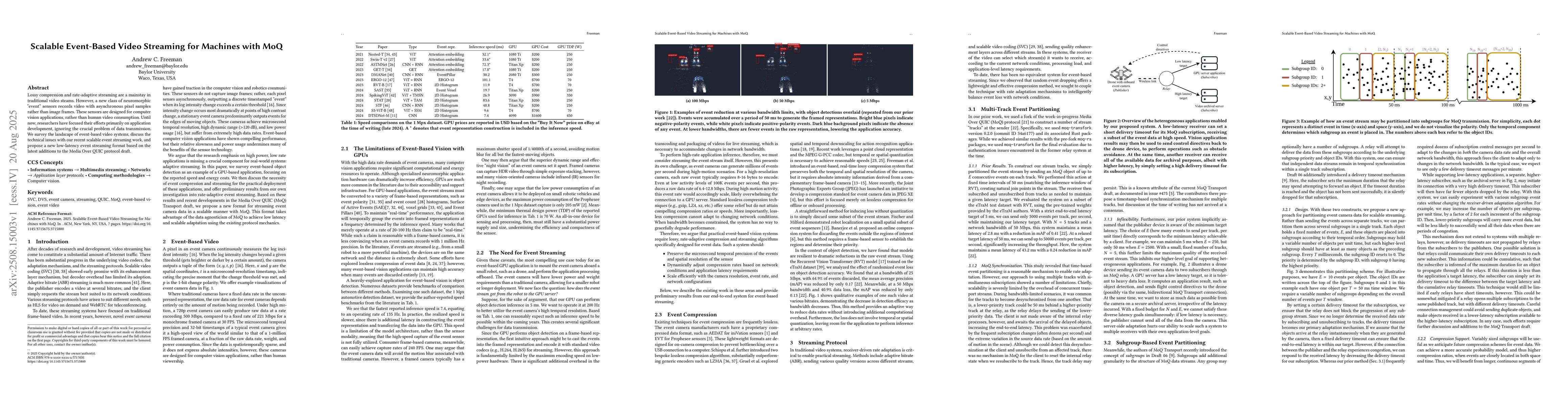 Lossy compression and rate-adaptive streaming are a mainstay in traditional video steams. However, a new class of neuromorphic ``event'' sensors records video with asynchronous pixel samples rather than image frames. These sensors are designed for computer vision applications, rather than human video consumption. Until now, researchers have focused their efforts primarily on application development, ignoring the crucial problem of data transmission. We survey the landscape of event-based video systems, discuss the technical issues with our recent scalable event streaming work, and propose a new low-latency event streaming format based on the latest additions to the Media Over QUIC protocol draft.