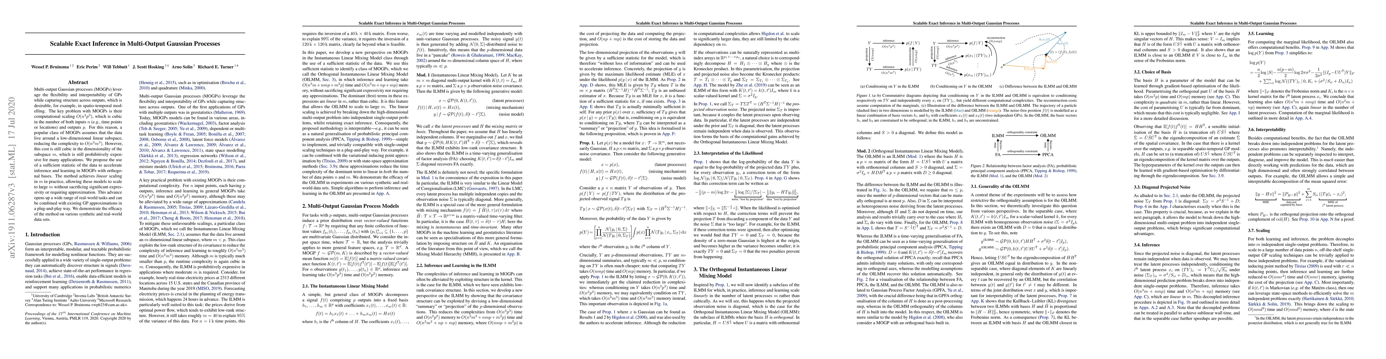 Multi-output Gaussian processes (MOGPs) leverage the flexibility and interpretability of GPs while capturing structure across outputs, which is desirable, for example, in spatio-temporal modelling. The key problem with MOGPs is their computational scaling $O(n^3 p^3)$, which is cubic in the number of both inputs $n$ (e.g., time points or locations) and outputs $p$. For this reason, a popular class of MOGPs assumes that the data live around a low-dimensional linear subspace, reducing the complexity to $O(n^3 m^3)$. However, this cost is still cubic in the dimensionality of the subspace $m$, which is still prohibitively expensive for many applications. We propose the use of a sufficient statistic of the data to accelerate inference and learning in MOGPs with orthogonal bases. The method achieves linear scaling in $m$ in practice, allowing these models to scale to large $m$ without sacrificing significant expressivity or requiring approximation. This advance opens up a wide range of real-world tasks and can be combined with existing GP approximations in a plug-and-play way. We demonstrate the efficacy of the method on various synthetic and real-world data sets.