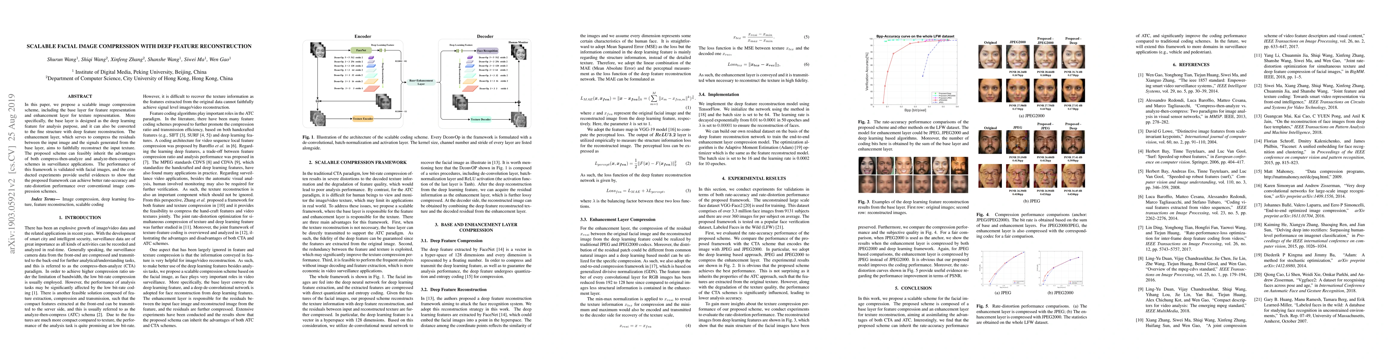 This paper proposes a scalable facial image compression scheme using a dual-layer approach: a base layer for deep feature representation and an enhancement layer for texture reconstruction. The framework combines the benefits of compress-then-analyze and analyze-then-compress methods, achieving superior rate-accuracy and rate-distortion performance compared to conventional schemes.