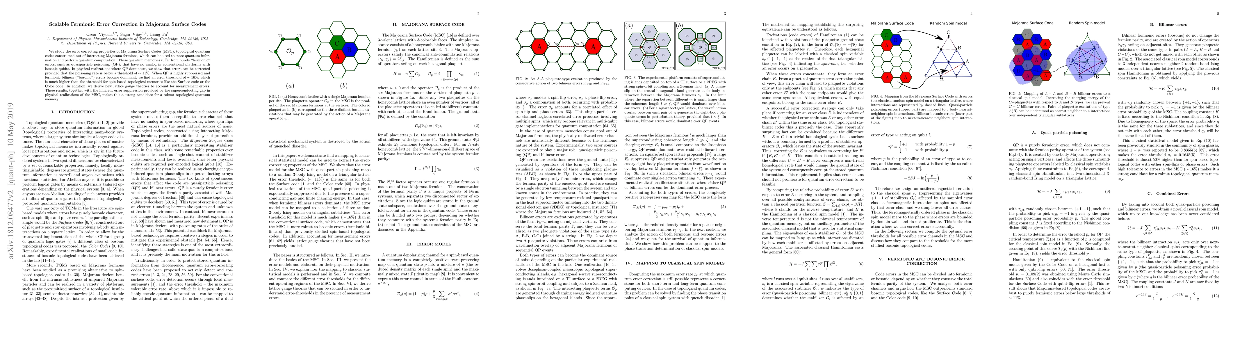 Researchers found that Majorana Surface Codes can correct errors if the quasiparticle poisoning rate is below 11%, but not if fermionic bilinear errors dominate at a threshold of 16%.