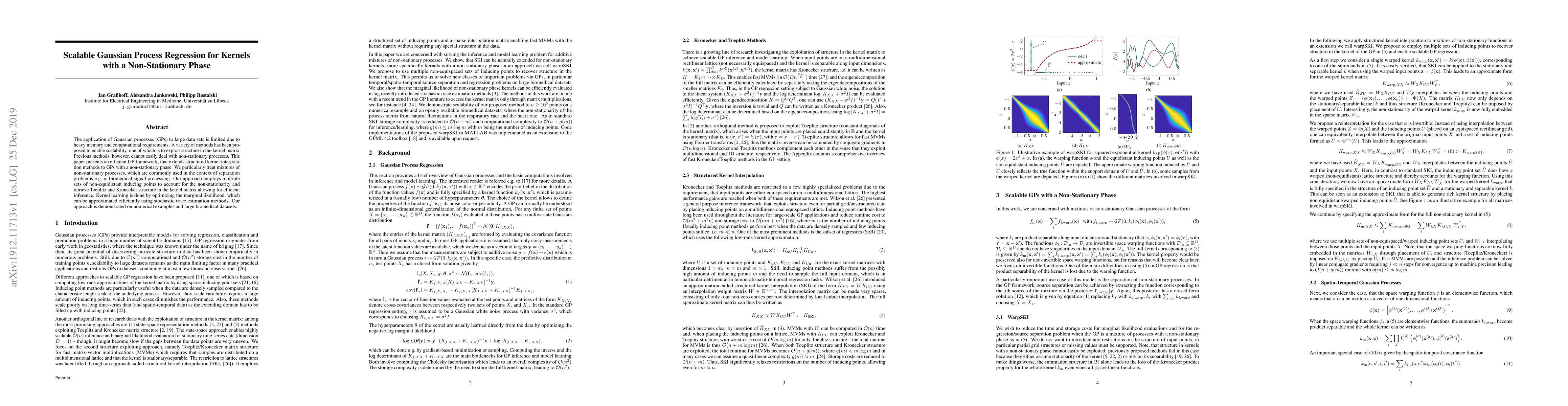 This paper proposes a scalable Gaussian process regression framework for non-stationary kernels by leveraging structured kernel interpolation and inducing points, enabling efficient inference and kernel learning on large datasets, particularly in biomedical signal processing. The method utilizes Toeplitz and Kronecker structures in the kernel matrix to manage computational demands.