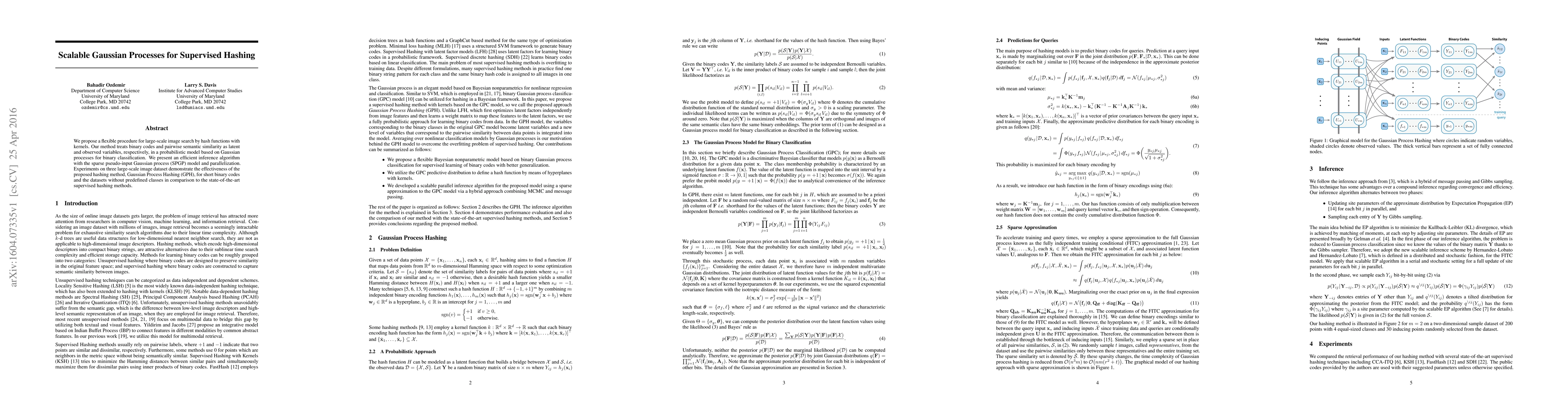 This paper introduces Gaussian Process Hashing (GPH), a scalable method for large-scale image search using hash functions with kernels. It employs a probabilistic model based on Gaussian processes and an efficient sparse pseudo-input Gaussian process algorithm for parallelization, demonstrating superior performance on large datasets compared to state-of-the-art supervised hashing techniques.