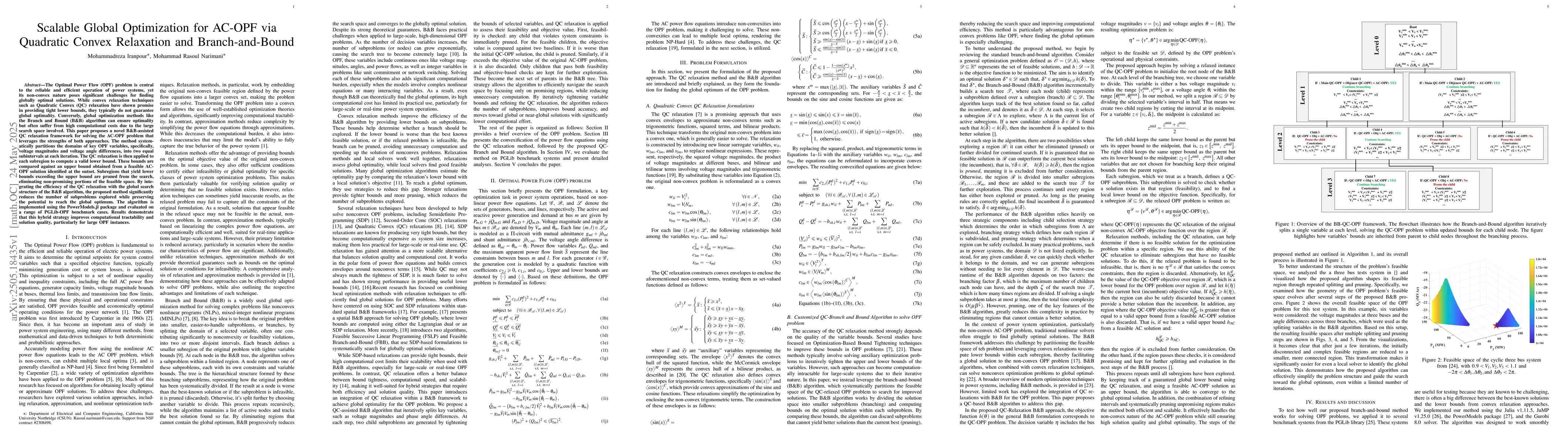 A novel integration of Quadratic Convex relaxation with the Branch-and-Bound algorithm for global optimization of the AC-OPF problem.