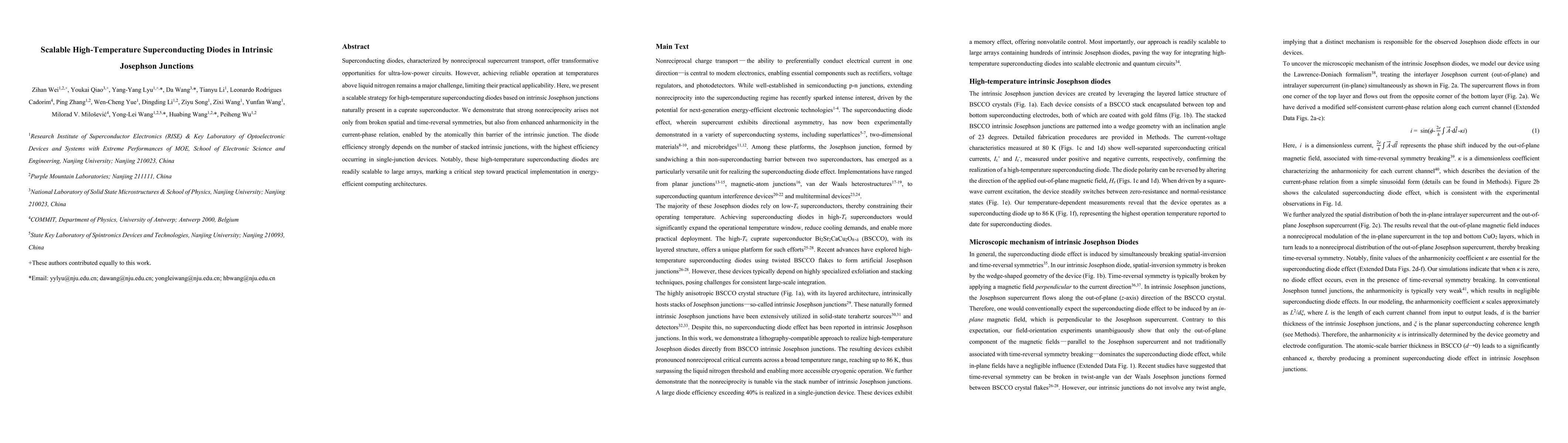 The paper introduces a novel approach for creating high-temperature superconducting diodes using intrinsic Josephson junctions, leveraging anharmonicity in the current-phase relation and the atomically thin barrier of the intrinsic junction.