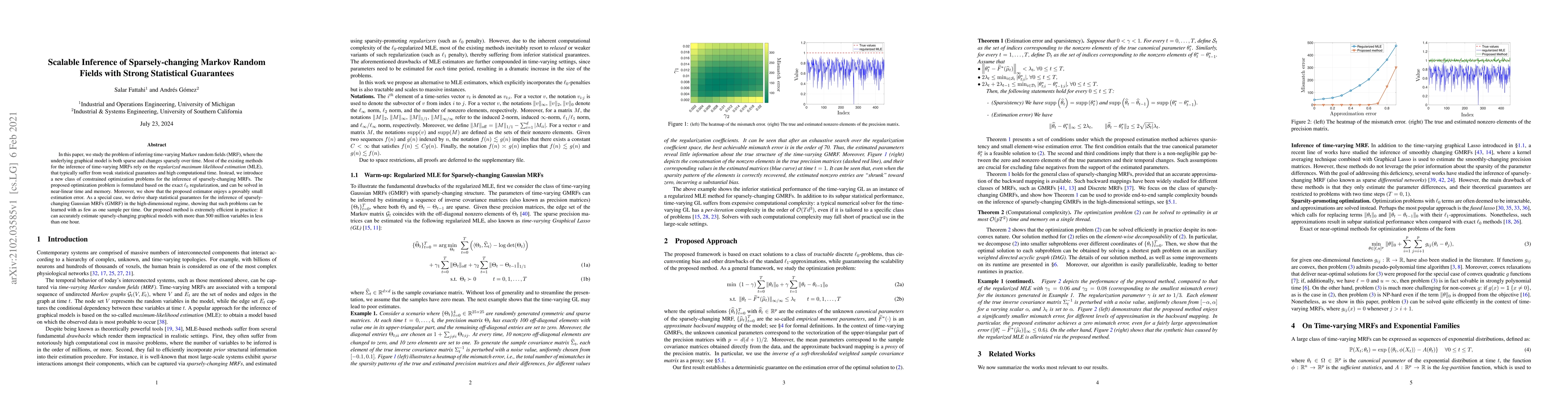 This paper proposes a new optimization method for inferring sparsely-changing Markov Random Fields (MRF) with strong statistical guarantees, offering near-linear time and memory efficiency. The method achieves provably small estimation error, especially for high-dimensional Gaussian MRFs, and can handle over 500 million variables in under an hour.