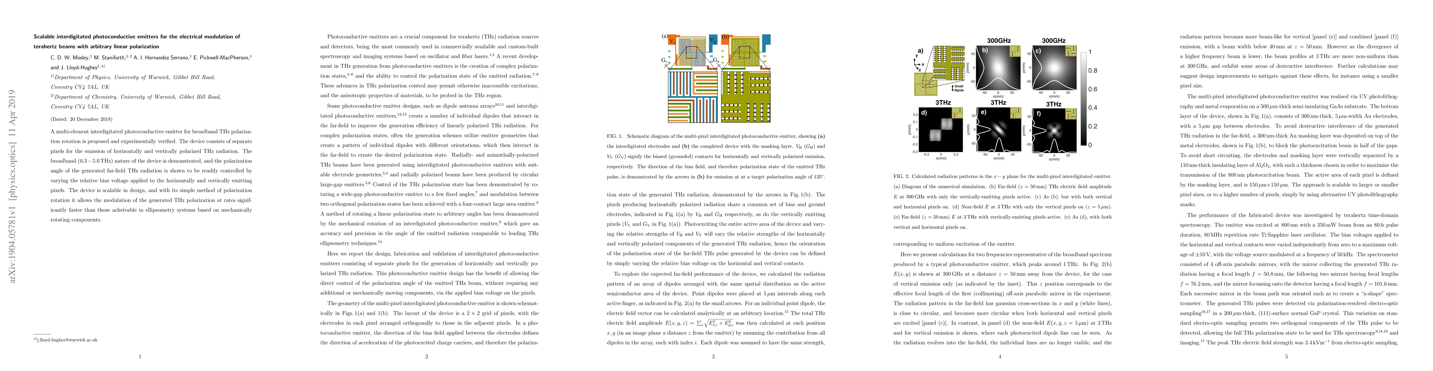 This paper proposes a scalable interdigitated photoconductive emitter for modulating terahertz (THz) beams with arbitrary linear polarization. The device enables broadband THz polarization rotation and is controlled by varying bias voltages, allowing faster modulation than mechanical systems.