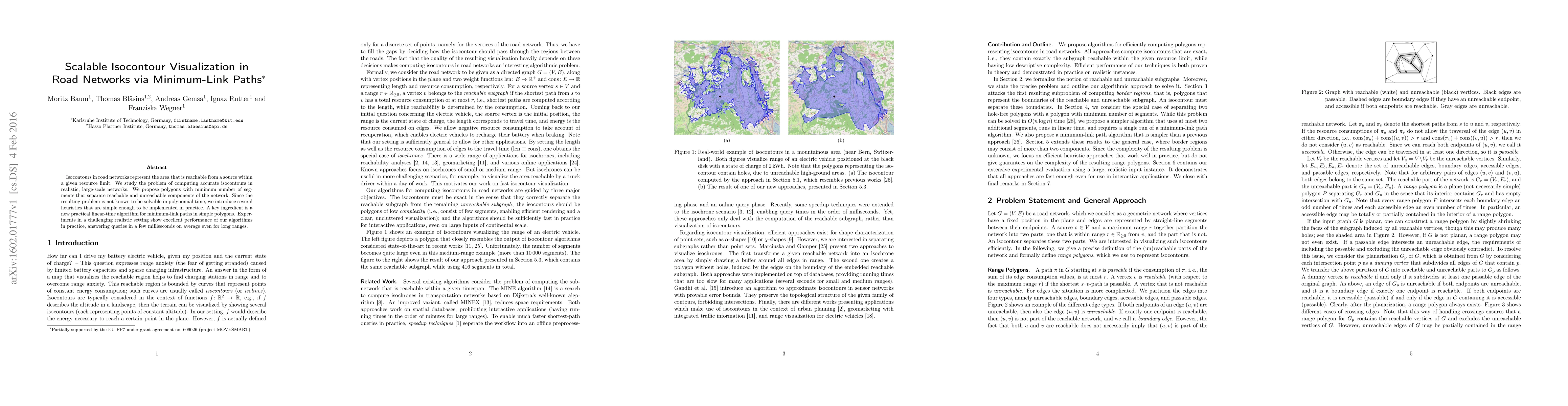 This paper proposes efficient heuristics for computing isocontours in large road networks, utilizing minimum-link paths and a new linear-time algorithm. Experiments demonstrate that the approach provides accurate results in milliseconds, even for extensive ranges.