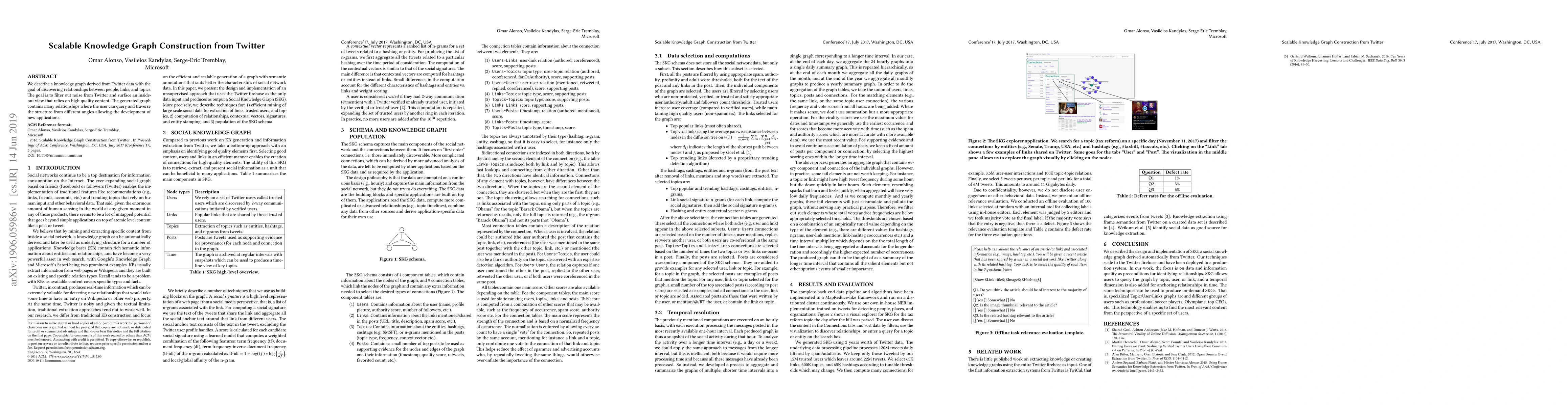 We describe a knowledge graph derived from Twitter data with the goal of discovering relationships between people, links, and topics. The goal is to filter out noise from Twitter and surface an inside-out view that relies on high quality content. The generated graph contains many relationships where the user can query and traverse the structure from different angles allowing the development of new applications.