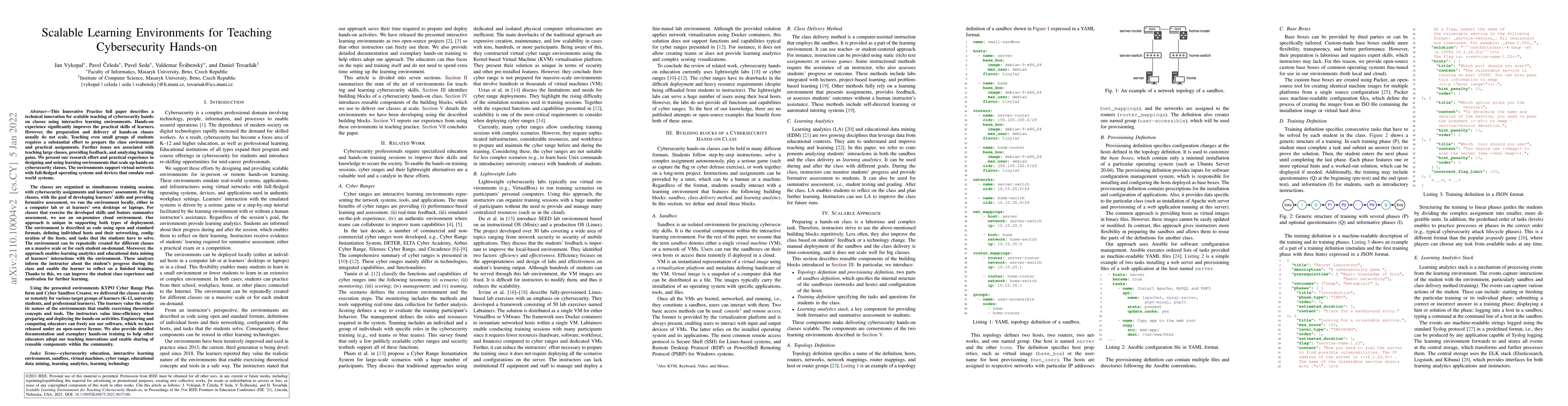 This paper presents scalable interactive learning environments for hands-on cybersecurity education, enabling practical skills training for diverse learner groups. The KYPO Cyber Range Platform and Cyber Sandbox Creator facilitate realistic virtual networks, enhancing both learner experience and instructor efficiency.