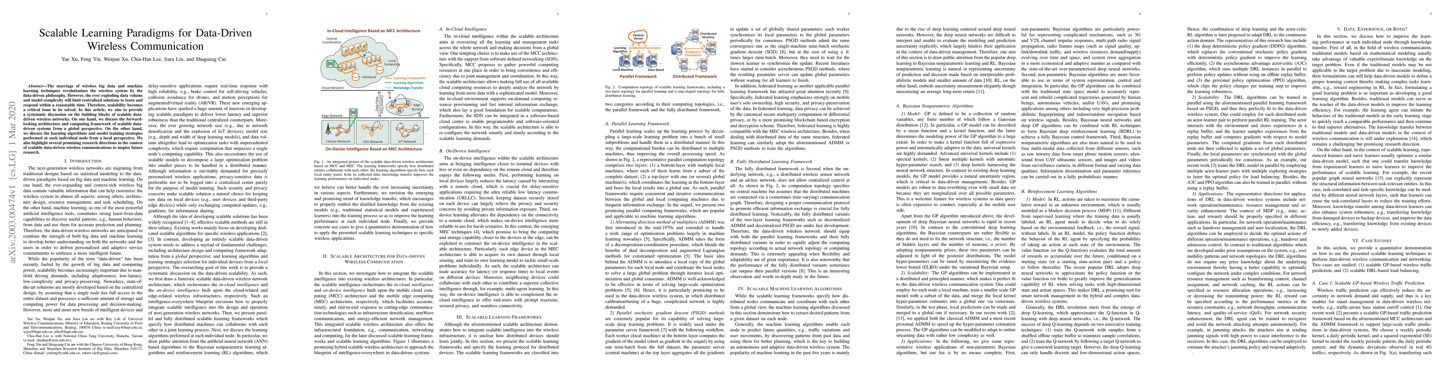 This paper explores scalable learning paradigms for data-driven wireless communication, addressing the challenges posed by large data volumes and model complexity. It discusses global architecture and computing frameworks, alongside local learning algorithms and model training strategies to enhance scalability.