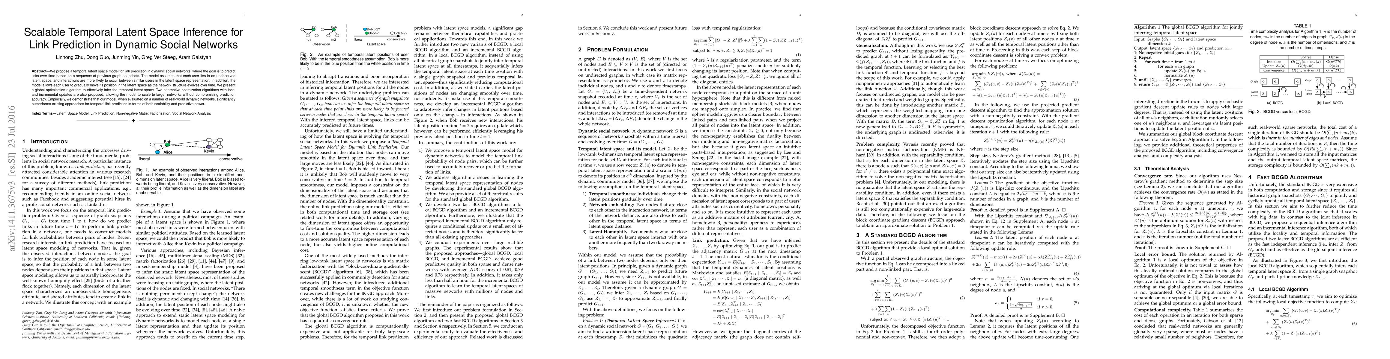 This paper introduces a scalable temporal latent space model for link prediction in dynamic social networks using non-negative matrix factorization. The model predicts links over time based on previous graph snapshots, allowing users to shift positions in the latent space as the network evolves, and demonstrates superior performance compared to existing methods.