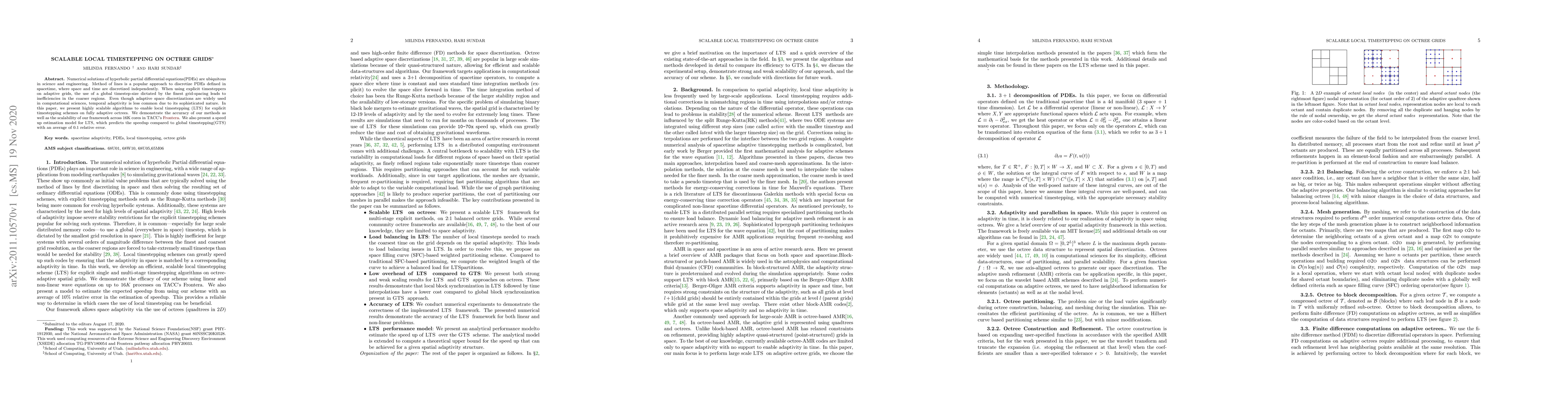 Researchers present scalable algorithms for local timestepping on adaptive octrees to improve efficiency in numerical simulations of hyperbolic PDEs.