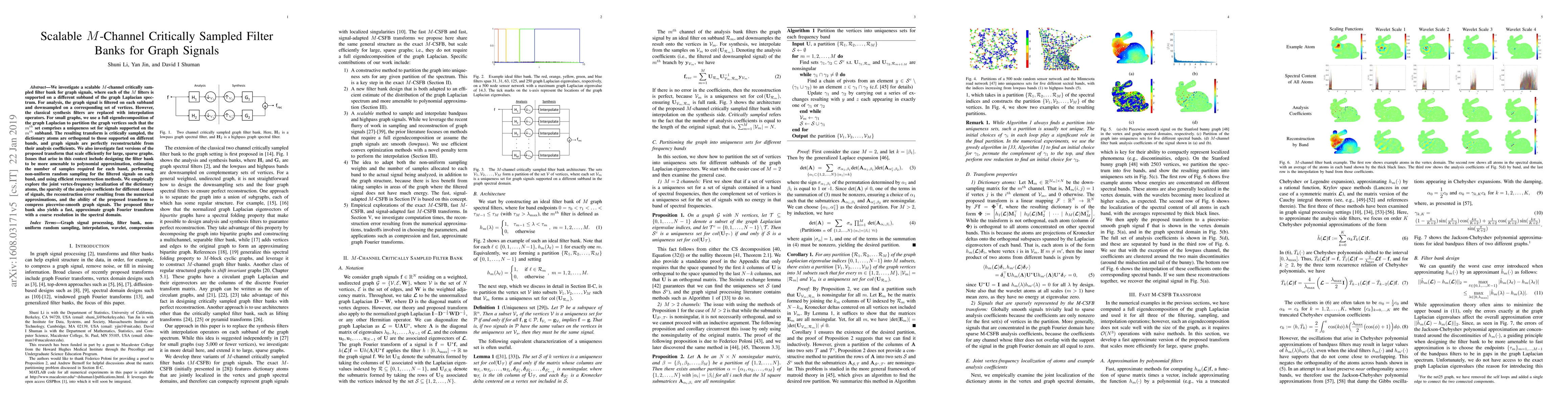 We investigate a scalable $M$-channel critically sampled filter bank for graph signals, where each of the $M$ filters is supported on a different subband of the graph Laplacian spectrum. For analysis, the graph signal is filtered on each subband and downsampled on a corresponding set of vertices. However, the classical synthesis filters are replaced with interpolation operators. For small graphs, we use a full eigendecomposition of the graph Laplacian to partition the graph vertices such that the $m^{th}$ set comprises a uniqueness set for signals supported on the $m^{th}$ subband. The resulting transform is critically sampled, the dictionary atoms are orthogonal to those supported on different bands, and graph signals are perfectly reconstructable from their analysis coefficients. We also investigate fast versions of the proposed transform that scale efficiently for large, sparse graphs. Issues that arise in this context include designing the filter bank to be more amenable to polynomial approximation, estimating the number of samples required for each band, performing non-uniform random sampling for the filtered signals on each band, and using efficient reconstruction methods. We empirically explore the joint vertex-frequency localization of the dictionary atoms, the sparsity of the analysis coefficients for different classes of signals, the reconstruction error resulting from the numerical approximations, and the ability of the proposed transform to compress piecewise-smooth graph signals. The proposed filter bank also yields a fast, approximate graph Fourier transform with a coarse resolution in the spectral domain.