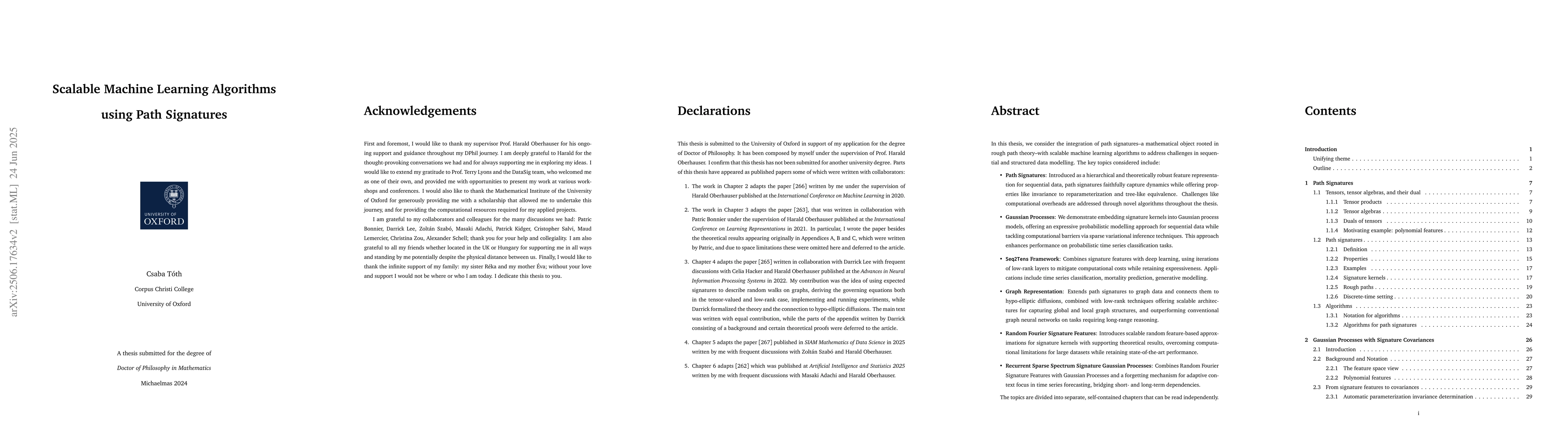The thesis bridges rough path theory with machine learning, introducing novel models that combine theoretical robustness with computational efficiency for sequential and structured data.
