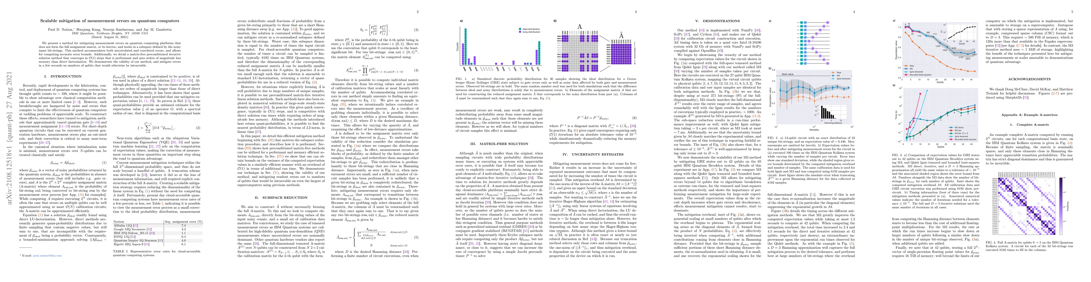 The research introduces a method to correct measurement errors in quantum computers without constructing the full assignment matrix, working within the subspace of noisy input bit-strings. This method efficiently handles both uncorrelated and correlated errors, providing accurate error bounds. It employs a fast, memory-efficient, matrix-free iterative solution that converges in constant time steps, demonstrating effectiveness on previously intractable large-scale quantum computations.