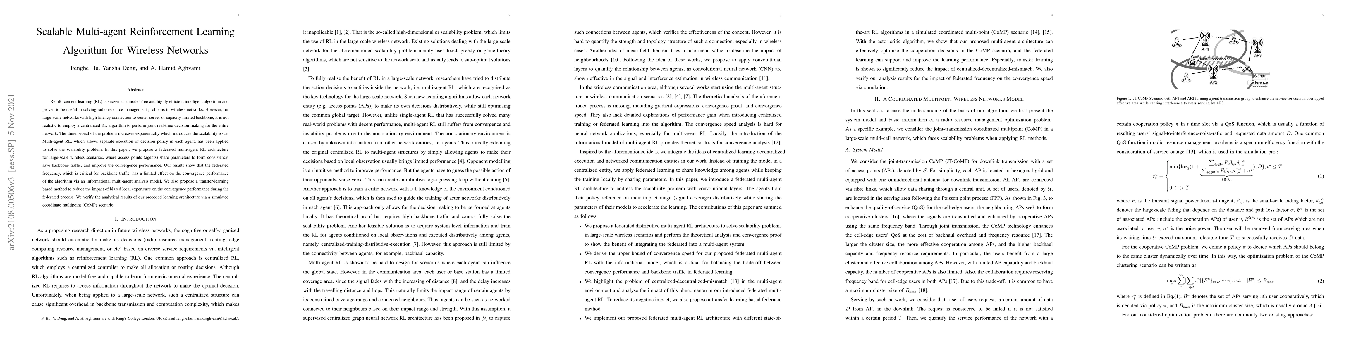 This paper proposes a scalable federated mean-field multi-agent reinforcement learning algorithm for large-scale wireless networks. The approach enables decentralized cooperation among agents, demonstrating effective performance in coordinated multi-point environments while maintaining individual agent personalities.