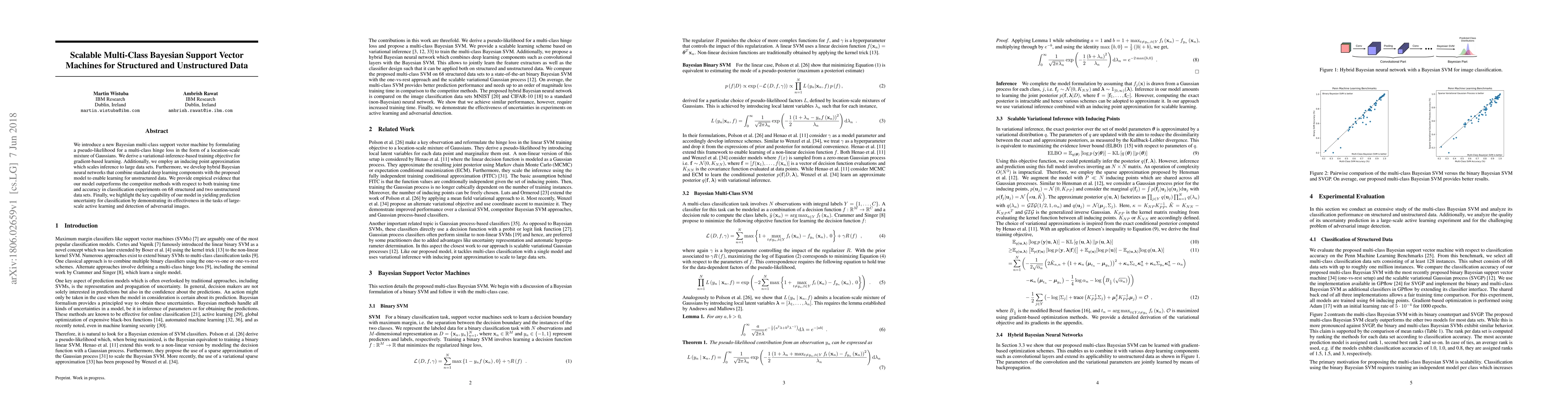 A new Bayesian support vector machine is introduced for scalable multi-class classification on structured and unstructured data, outperforming existing methods in terms of accuracy and training time.