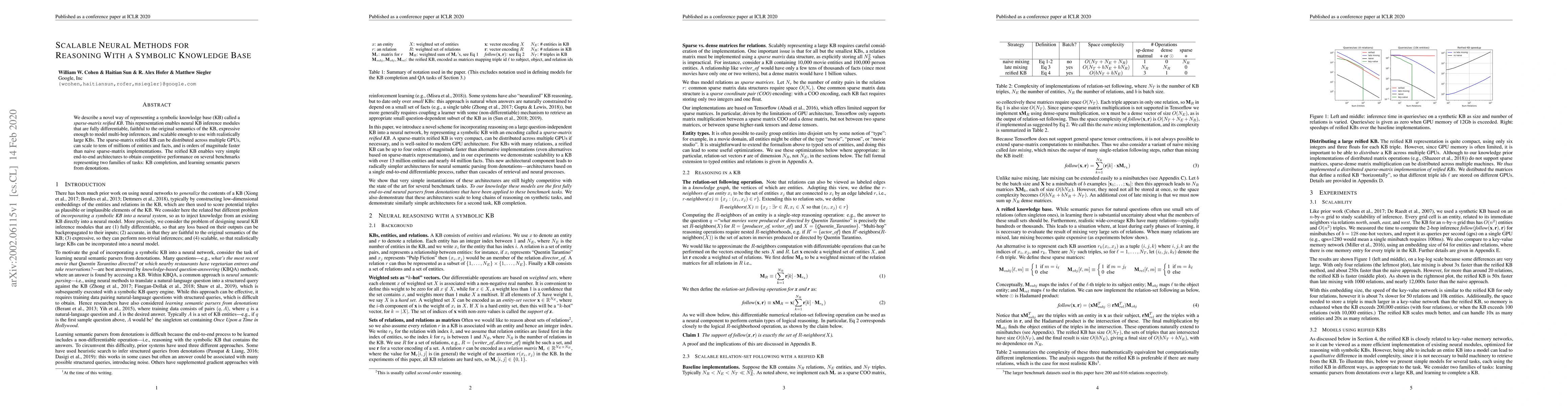 Researchers developed a new way to represent large knowledge bases using neural networks, enabling faster and more scalable reasoning with symbolic information. This innovation enables competitive performance on benchmarks for tasks like knowledge completion and semantic parsing.