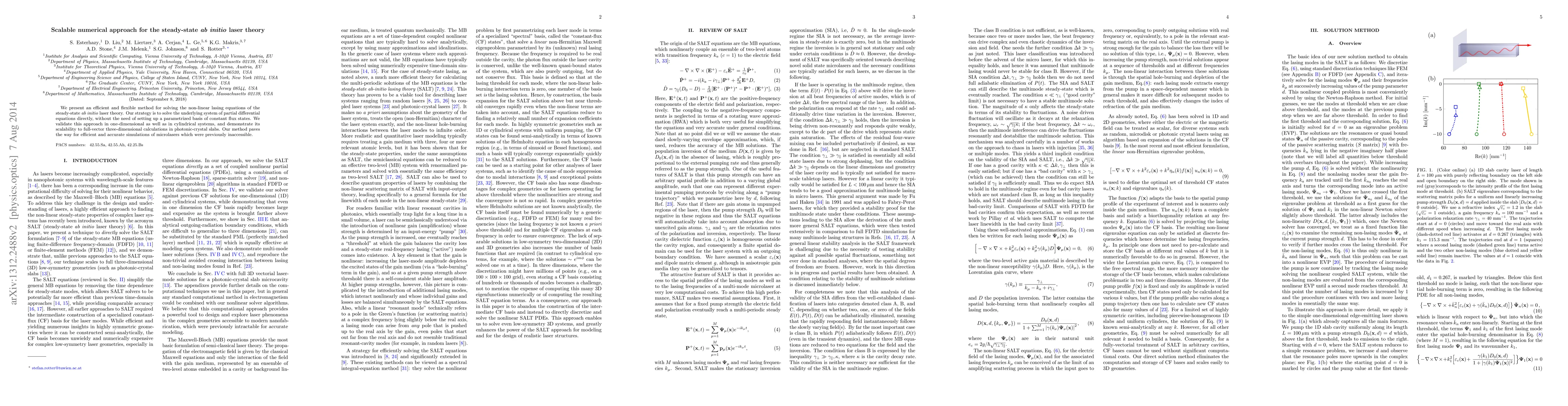 This paper introduces a scalable numerical method for solving the non-linear lasing equations in steady-state ab initio laser theory, directly addressing the underlying partial differential equations without relying on parametrized basis states. The method is validated in one-dimensional and cylindrical systems and shown to scale to three-dimensional photonic-crystal slab simulations.