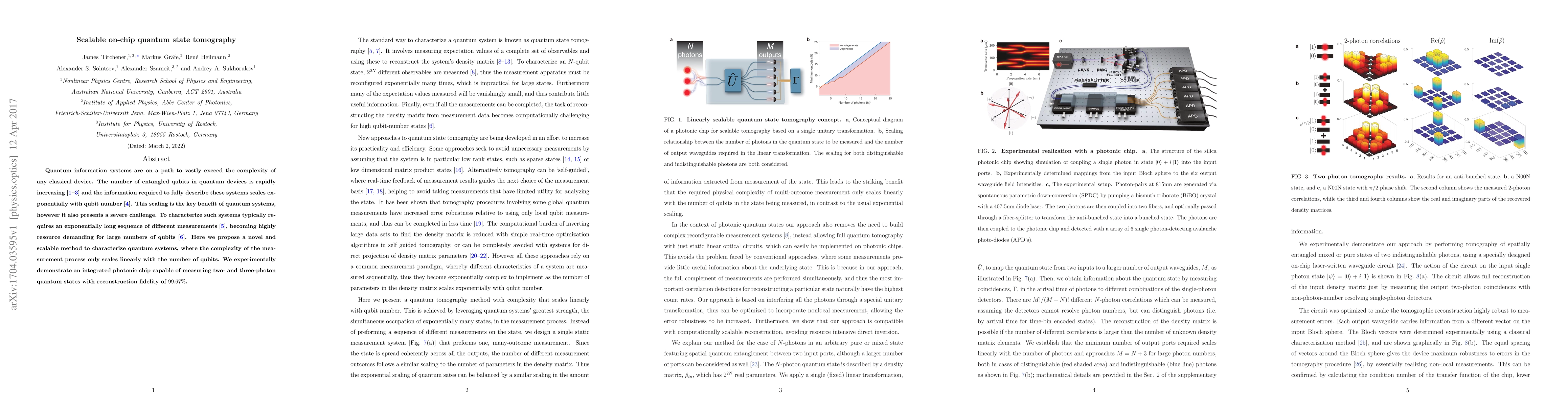 Quantum information systems are on a path to vastly exceed the complexity of any classical device. The number of entangled qubits in quantum devices is rapidly increasing and the information required to fully describe these systems scales exponentially with qubit number. This scaling is the key benefit of quantum systems, however it also presents a severe challenge. To characterize such systems typically requires an exponentially long sequence of different measurements, becoming highly resource demanding for large numbers of qubits. Here we propose a novel and scalable method to characterize quantum systems, where the complexity of the measurement process only scales linearly with the number of qubits. We experimentally demonstrate an integrated photonic chip capable of measuring two- and three-photon quantum states with reconstruction fidelity of 99.67%.