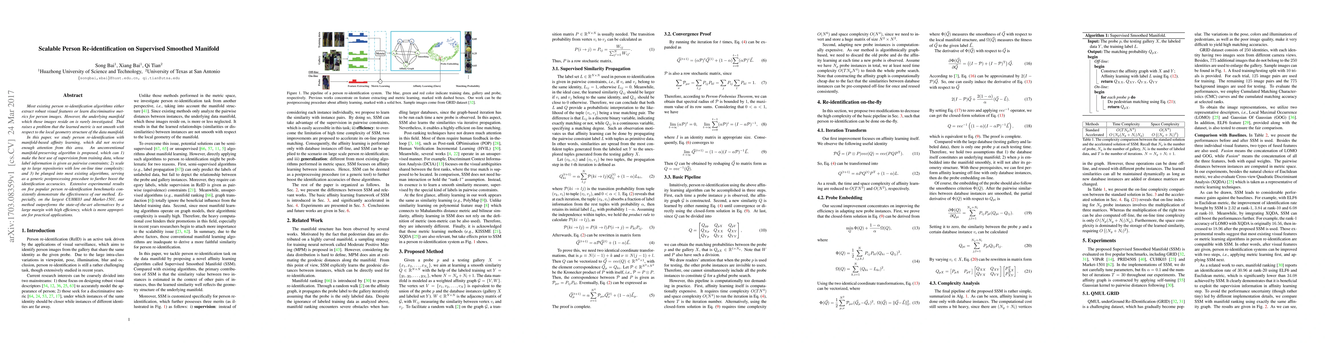 This research introduces a manifold-preserving algorithm for person re-identification, leveraging supervised pairwise constraints to create a smooth metric on the data manifold. The method scales well for large datasets and enhances existing algorithms, outperforming state-of-the-art alternatives on popular benchmarks like CUHK03 and Market-1501 with high efficiency.