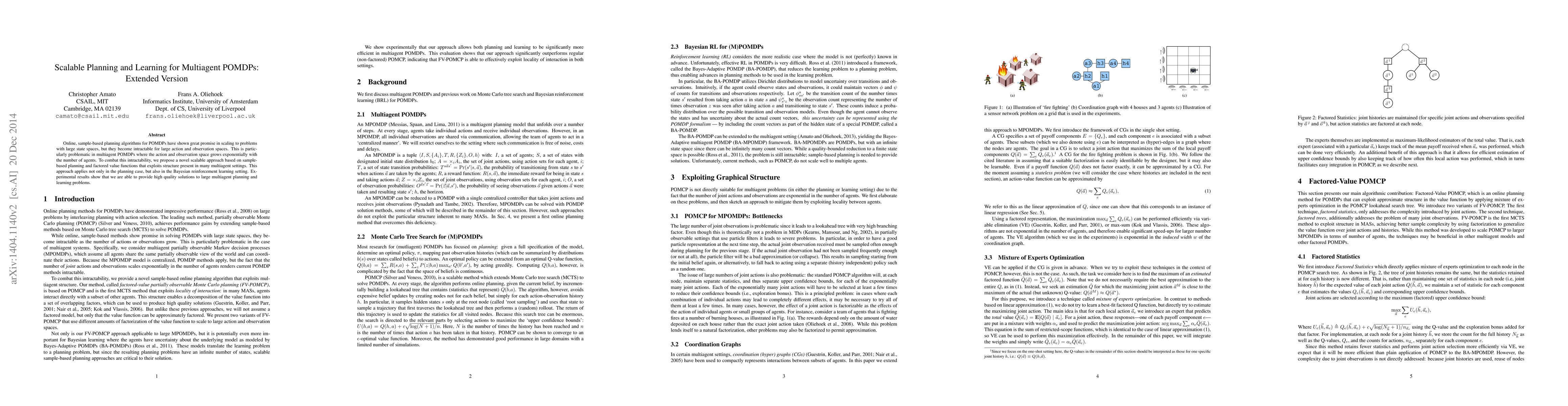 This paper proposes a scalable approach for solving multiagent POMDPs using sample-based planning and factored value functions, addressing the intractability in large action and observation spaces. The method is shown to provide high-quality solutions in both planning and reinforcement learning contexts.