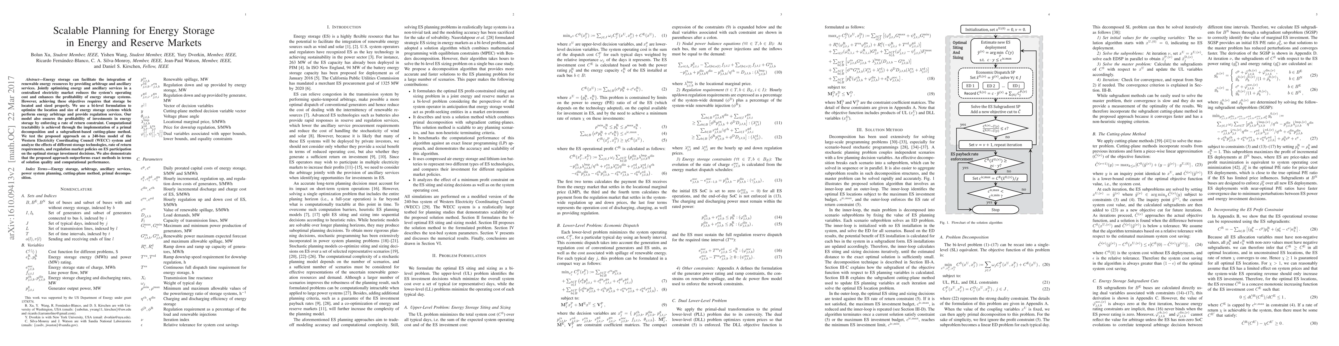 This paper proposes a bi-level optimization model to determine the optimal location and size of energy storage systems for minimizing operating costs and maximizing profitability in energy and reserve markets. The approach employs primal decomposition and a subgradient-based cutting-plane method to ensure computational efficiency and is tested on a 240-bus WECC system model.