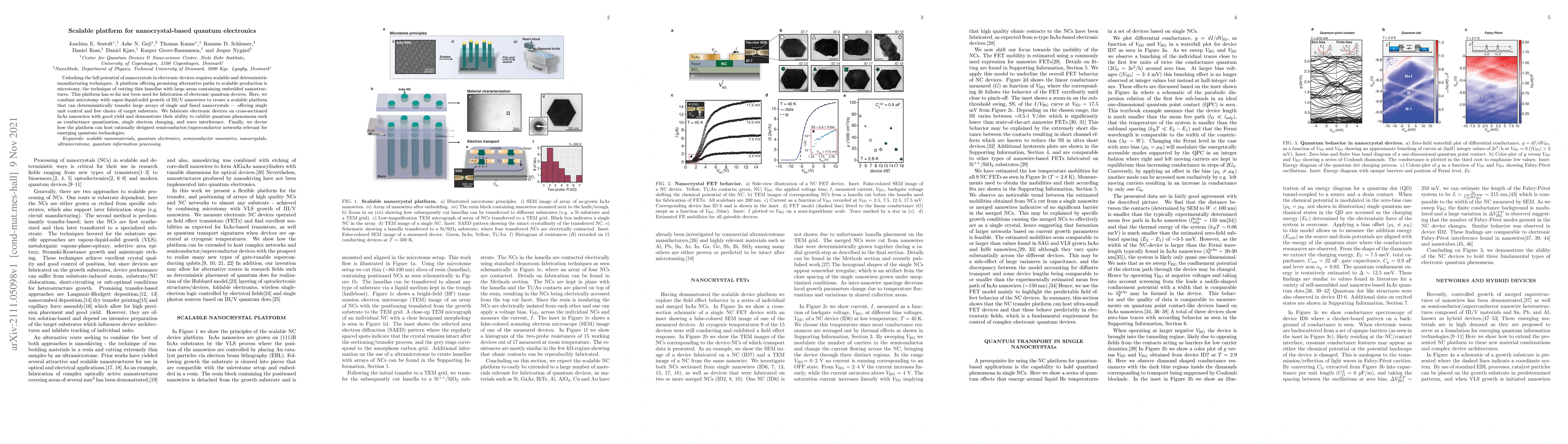This paper presents a scalable microtomy-based platform for deterministic manufacturing of nanocrystal-based quantum electronic devices, combining microtomy with vapor-liquid-solid growth of III/V nanowires. The platform enables the fabrication of quantum devices exhibiting quantum phenomena and holds potential for creating semiconductor/superconductor networks for quantum technologies.