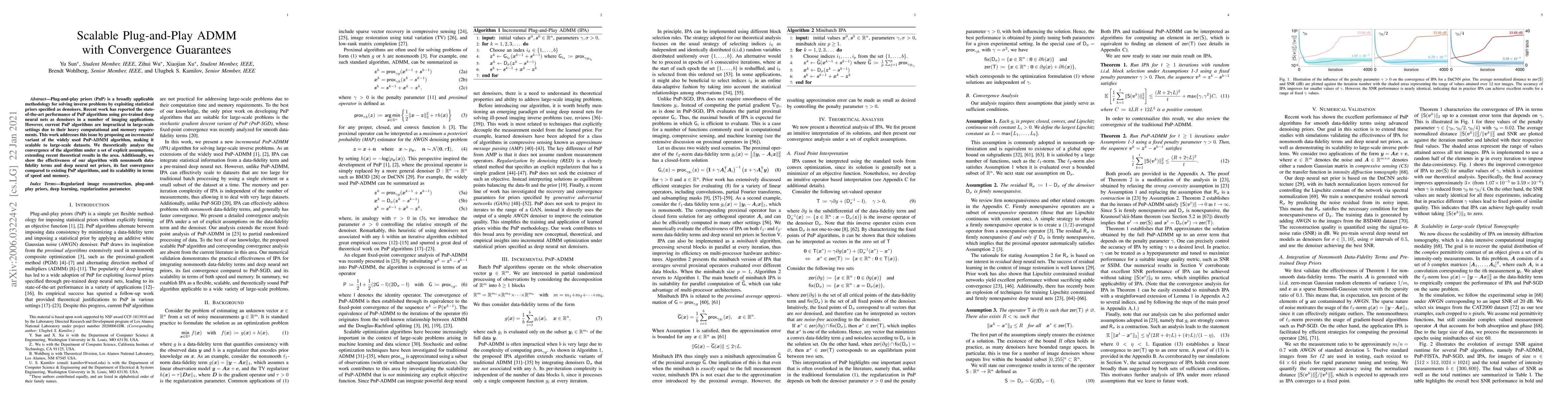 This paper proposes an incremental variant of the Plug-and-Play ADMM algorithm to make it scalable for large-scale datasets, addressing the impracticality of current PnP algorithms. The authors provide theoretical convergence guarantees and demonstrate the algorithm's effectiveness, fast convergence, and scalability in imaging applications.