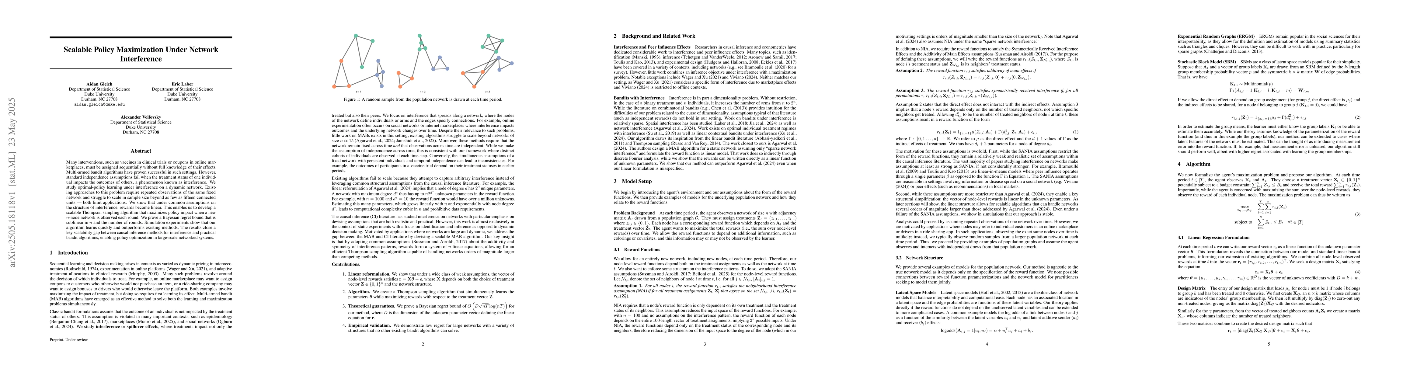A scalable Thompson sampling algorithm for policy maximization under network interference with a sublinear regret bound.