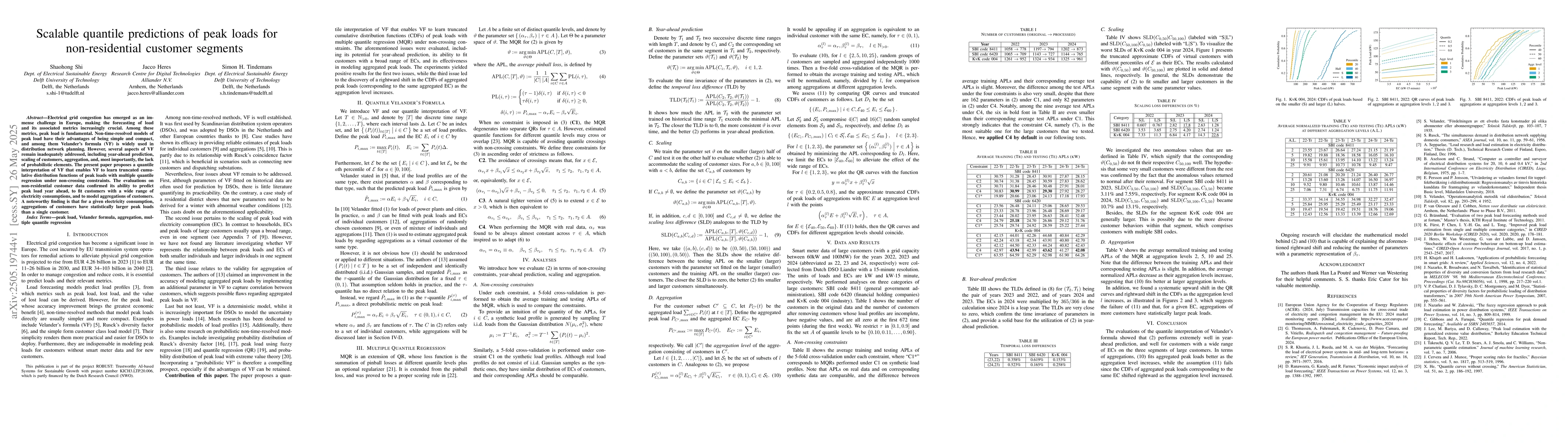 The paper proposes a quantile interpretation of Velander's formula (VF) for peak load prediction, utilizing multiple quantile regression under non-crossing constraints to learn truncated cumulative distribution functions of peak loads.