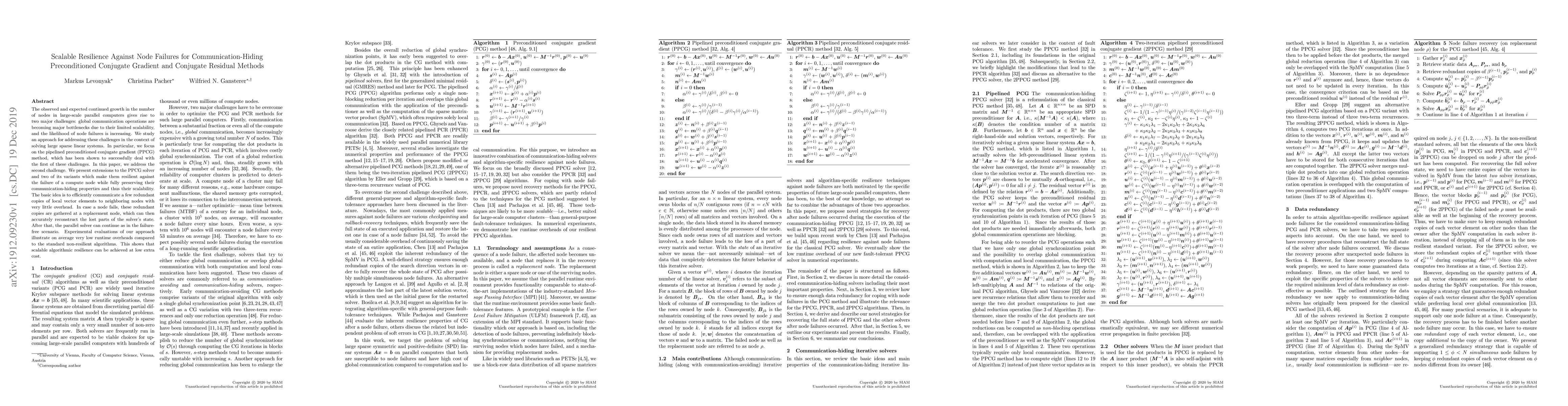 This paper proposes a method to make the pipelined preconditioned conjugate gradient algorithm resilient against node failures in parallel computers, while preserving its scalability.