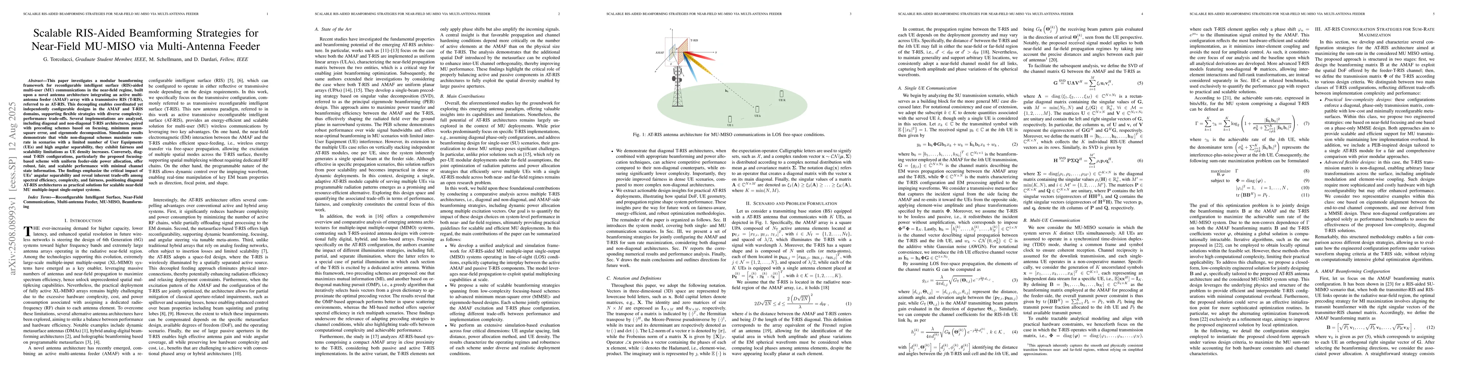 This paper investigates a modular beamforming framework for reconfigurable intelligent surface (RIS)-aided multi-user (MU) communications in the near-field regime, built upon a novel antenna architecture integrating an active multi-antenna feeder (AMAF) array with a transmissive RIS (T-RIS), referred to as AT-RIS. This decoupling enables coordinated yet independently configurable designs in the AMAF and T-RIS domains, supporting flexible strategies with diverse complexity-performance trade-offs. Several implementations are analyzed, including diagonal and non-diagonal T-RIS architectures, paired with precoding schemes based on focusing, minimum mean square error, and eigenmode decomposition. Simulation results demonstrate that while non-diagonal schemes maximize sum rate in scenarios with a limited number of User Equipments (UEs) and high angular separability, they exhibit fairness and scalability limitations as UE density increases. Conversely, diagonal T-RIS configurations, particularly the proposed focusing-based scheme with uniform feeder-side power allocation, offer robust, fair, and scalable performance with minimal channel state information. The findings emphasize the critical impact of UEs' angular separability and reveal inherent trade-offs among spectral efficiency, complexity, and fairness, positioning diagonal AT-RIS architectures as practical solutions for scalable near-field MU multiple-input single-output systems.